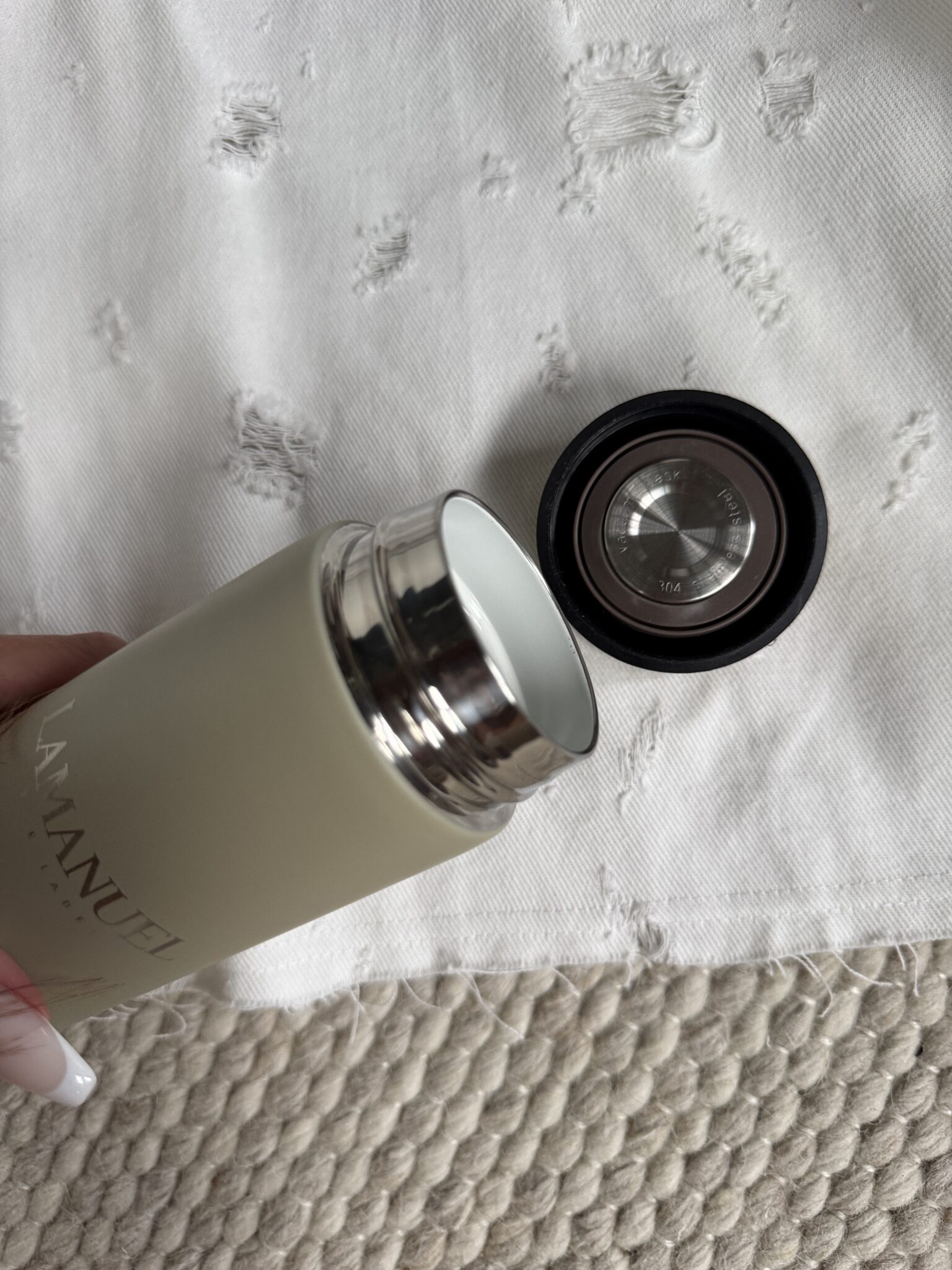Dwuścienna butelka z izolacją próżniową z recyklingowanej stali nierdzewnej (90% z recyklingowanej stali nierdzewnej i 10% ze stali nierdzewnej) z ceramiczną warstwą wewnętrzną. Pojemność: 420 ml.Cisza poranka, ulubiona herbata i detale, które robią różnicę. Delikatna, subtelna, stworzona do spokojnych chwil.