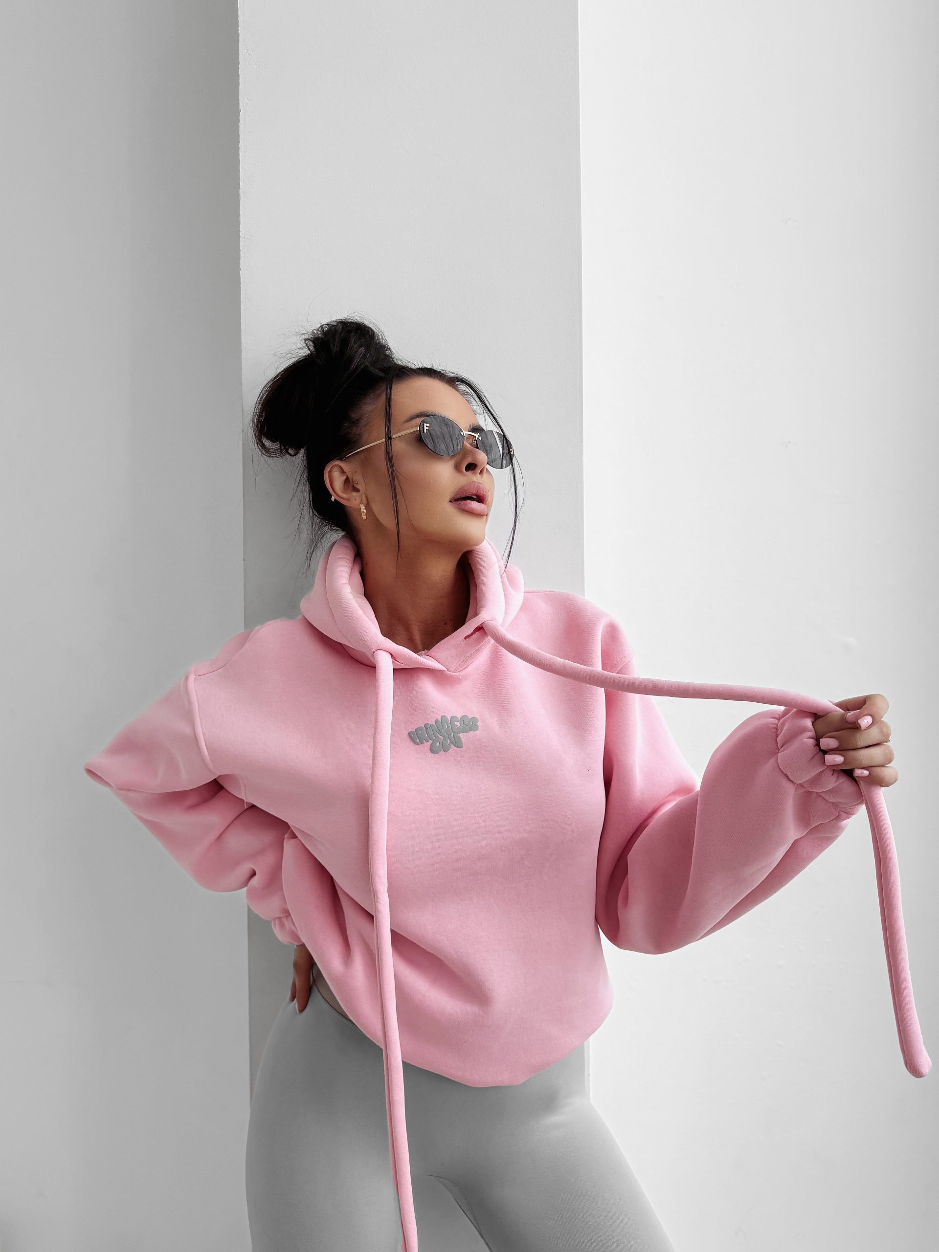 Miękka, oversize’owa bluza z obszernym kapturem i wydłużonymi troczkami. Wykonana z wysokiej jakości przyjemnego oraz otulającego materiału. Z przodu subtelny, puchaty napis PRINCESS OLV w stylu „bubble”. Tył zdobi wyrazisty nadruk PRINCESS OLV.