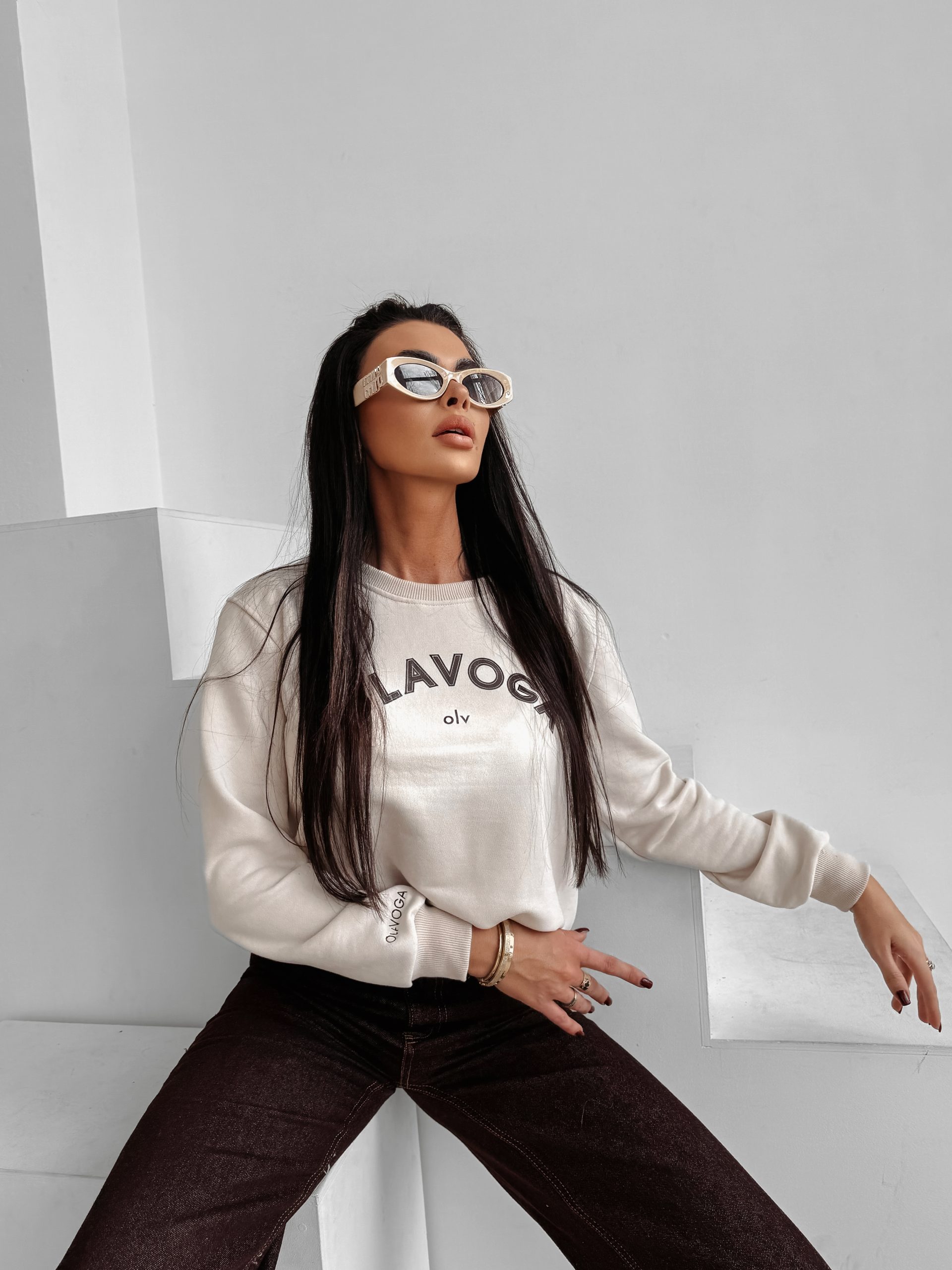 Casualowa bluzka z długim rękawem, bez kaptura, o luźnym kroju. Wykonana z wysokiej jakości miękkiej, przyjemnej w dotyku bawełny. Z przodu obszerne logo marki OLAVOGA w kontrastowym kolorze oraz subtelnym akcentem olv pod spodem. Dół i rękawy zakończone prążkowanymi ściągaczami. Na jednym z rękawów haft z logo brandu.