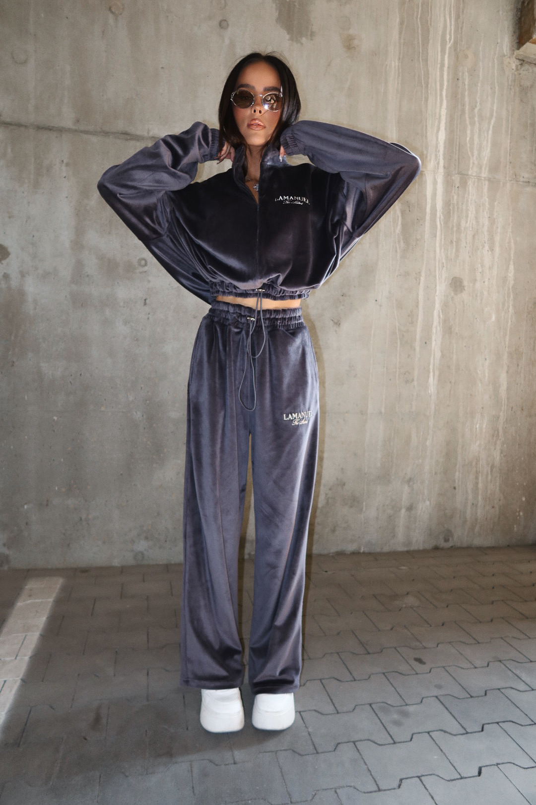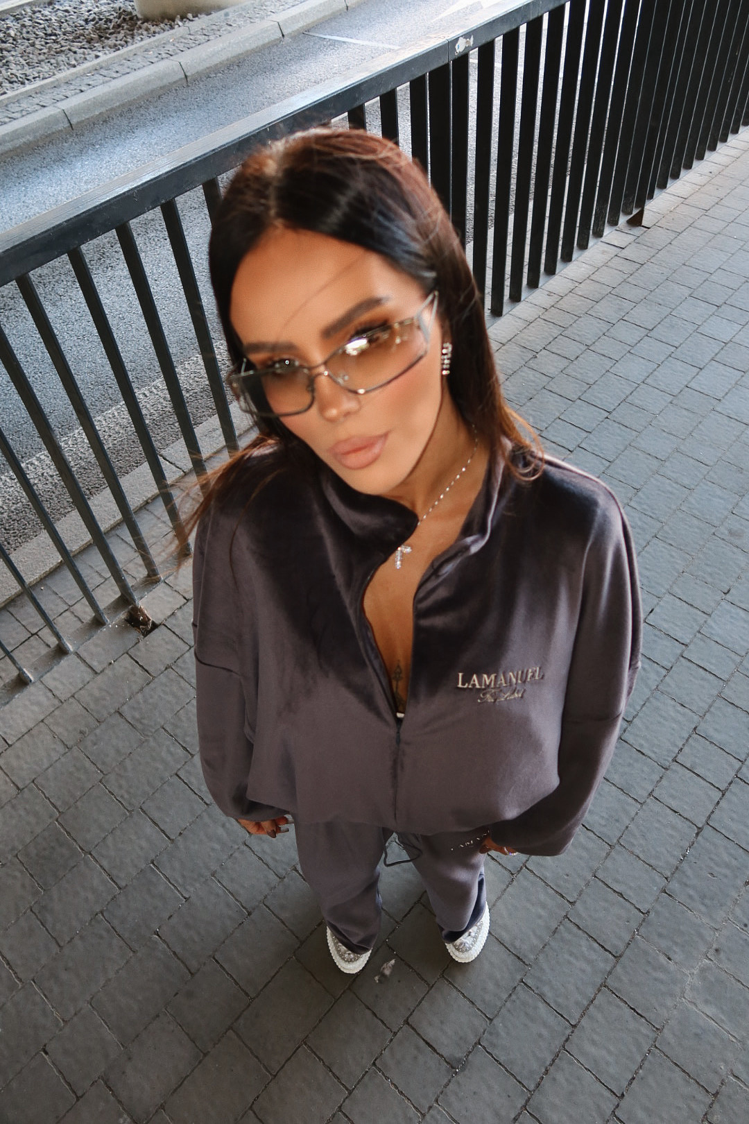 Bluza z miękkiego, welurowego materiału o lekko oversize’owym kroju. Wykończona krótkim zamkiem i regulacją w talii, co pozwala idealnie dopasować ją do każdej sylwetki. Komfortowa, ale jednocześnie bardzo stylowa — noś ją w komplecie lub solo.Skład: 95% poliester 5% elastan