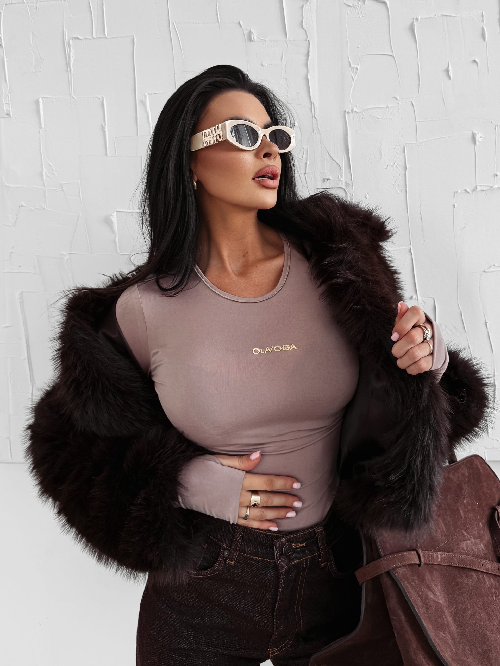 Idealnie dopasowane body z długim rękawem. Wykonane z wysokiej jakości elastycznego materiału. Produkt posiada wycięcie na kciuk. Na przodzie subtelne logo marki OLAVOGA.