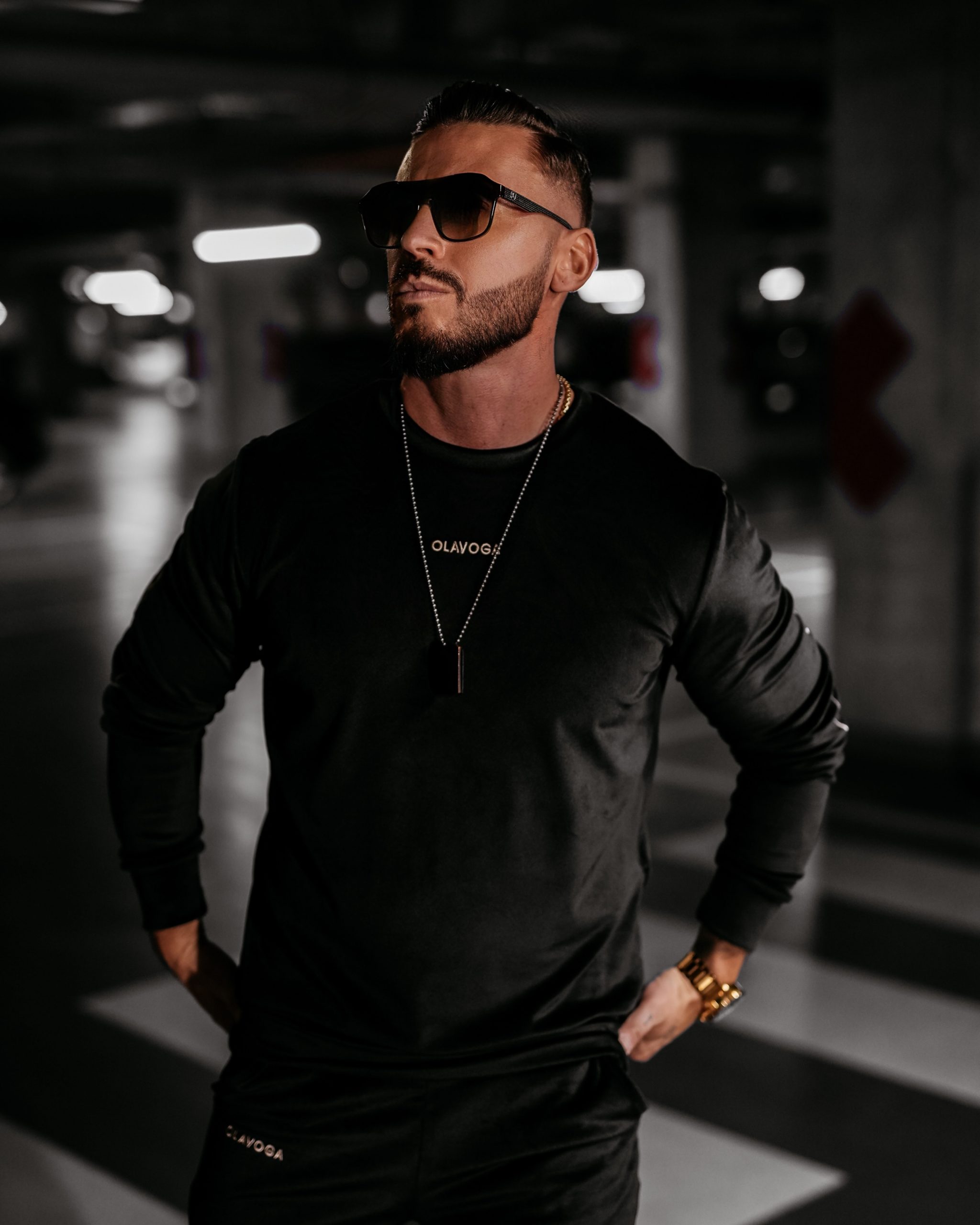Sportowy komplet męski. Wykonany z miękkiego w dotyku weluru. Góra – delikatnie oversiz’owa bluza bez kaptura z delikatnie opadającymi ramionami. Na przodzie minimalistyczny haft z logo marki OLAVOGA. Tył zdobi obszerny haft z logo brandy. Dół – sportowe spodnie z wysokim stanem. Po bokach kieszenie. Guma w pasie. Na brzegach ściągacze. Na przodzie minimalistyczny haft z logo marki OLAVOGA. Produkt dla Niej i dla Niego.
