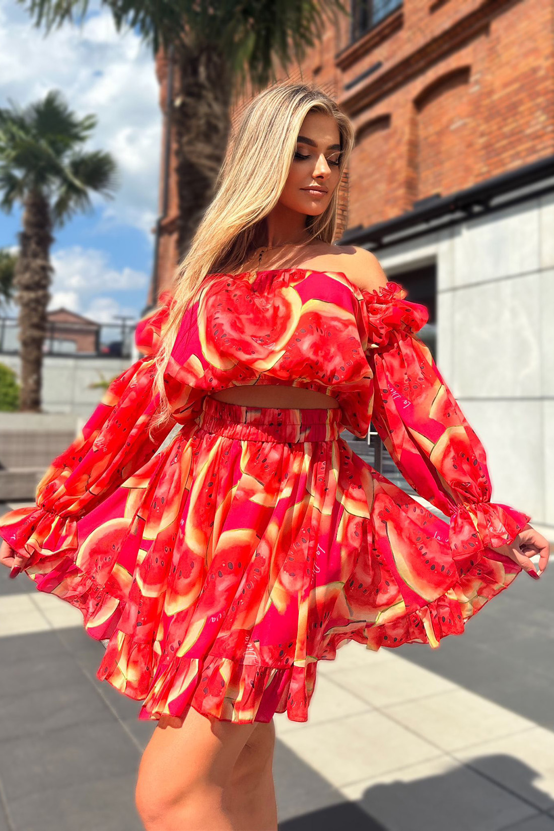 Poznaj nasz elegancki zestaw La Diva w arbuzowe wzory, składający się z modnej spódniczki i stylowej hiszpańskiej bluzki. Ta wyjątkowa kolekcja podkreśli Twoją kobiecość, dodając świeżości i uroku każdej stylizacji. Wykonane z wysokiej jakości materiałów, zapewniają komfort noszenia na co dzień i na wyjątkowe okazje. Arbuzowy print to trefa oryginalności, która przyciąga spojrzenia i zapewnia unikalny look. Zestaw La Diva to świetny wybór dla pewnych siebie kobiet, które chcą wyglądać modnie i czuć się komfortowo. Postaw na style, które wyróżnią Cię z tłumu!
