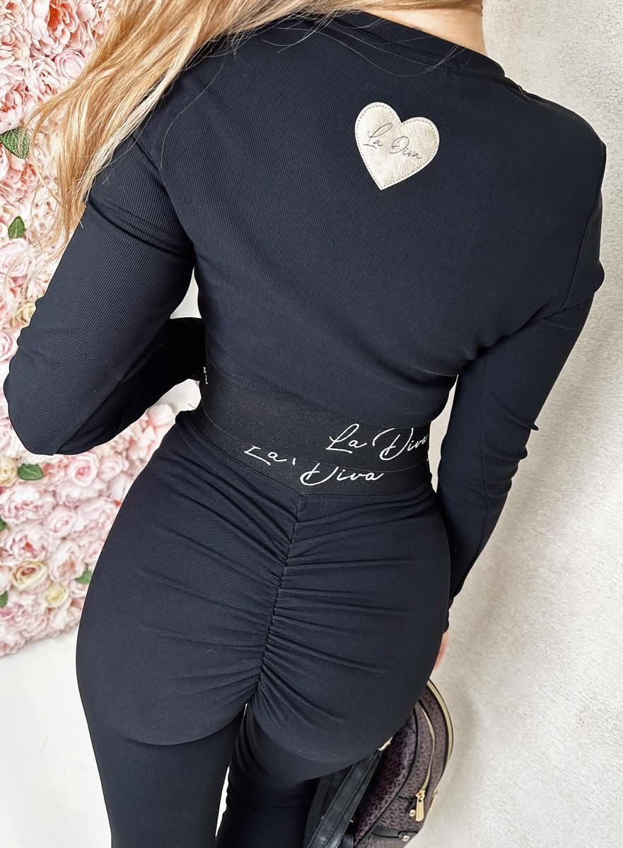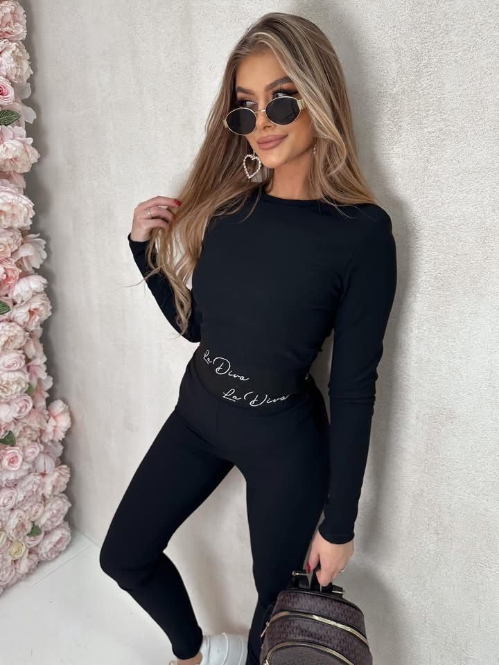 Odkryj perfekcyjne połączenie stylu i komfortu dzięki kompletnemu zestawowi La Diva w eleganckim czarnym wydaniu. Top Guma doskonale podkreśla sylwetkę, zapewniając wygodę i pewność siebie podczas każdej aktywności. Legginsy La Diva to nie tylko modny look, ale także wysokiej jakości materiał, który dopasowuje się do ciała, gwarantując swobodę ruchów i trwałość na dłużej. Ten zestaw sprawdzi się zarówno na siłowni, jak i na co dzień, podkreślając twój indywidualny styl. Bądź pewna siebie i komfortowa w każdej sytuacji!