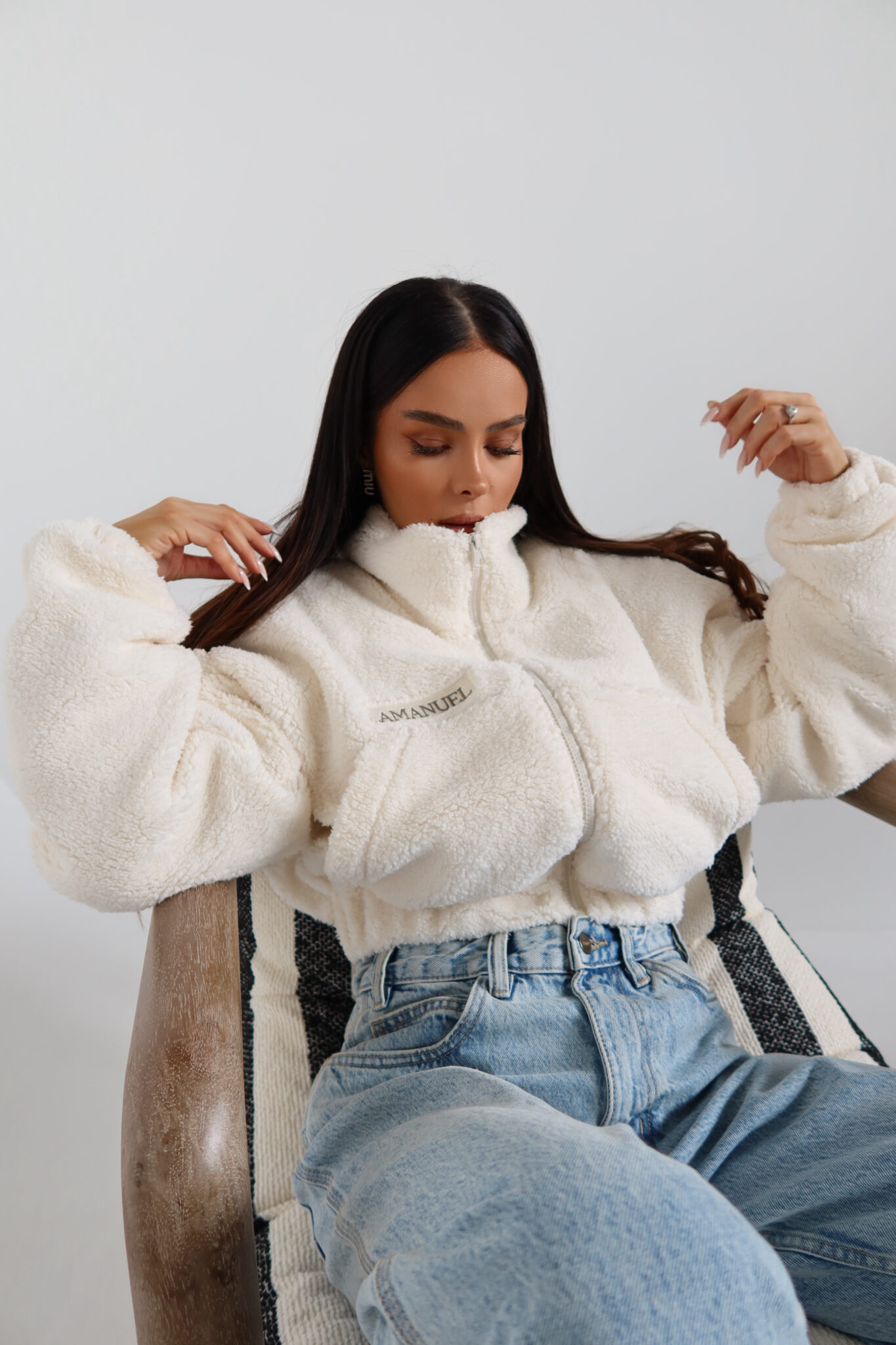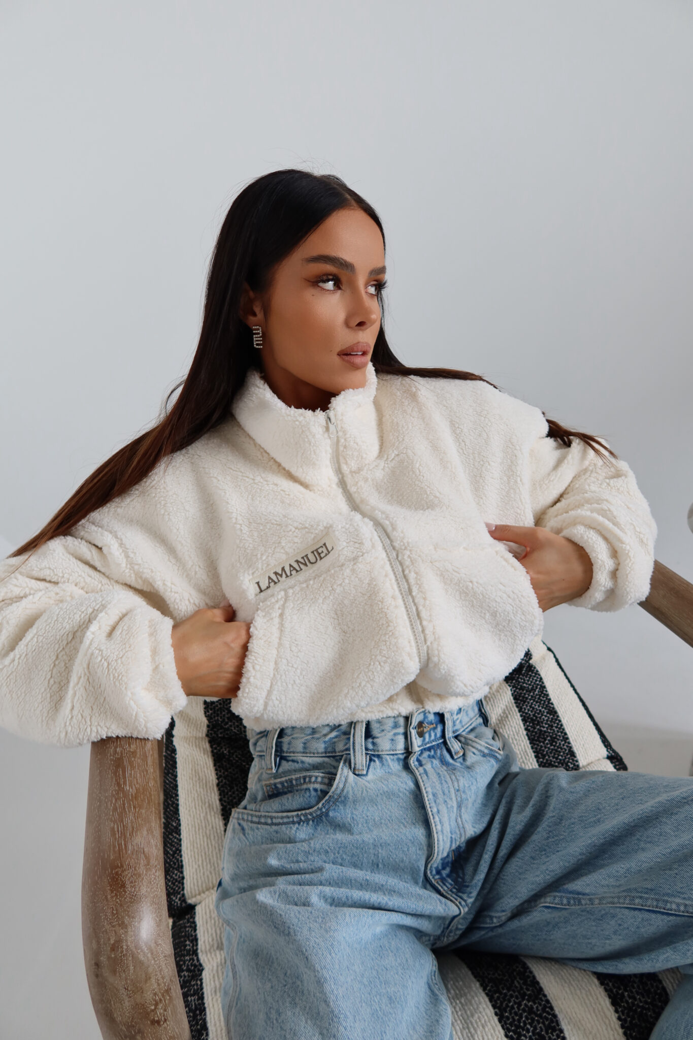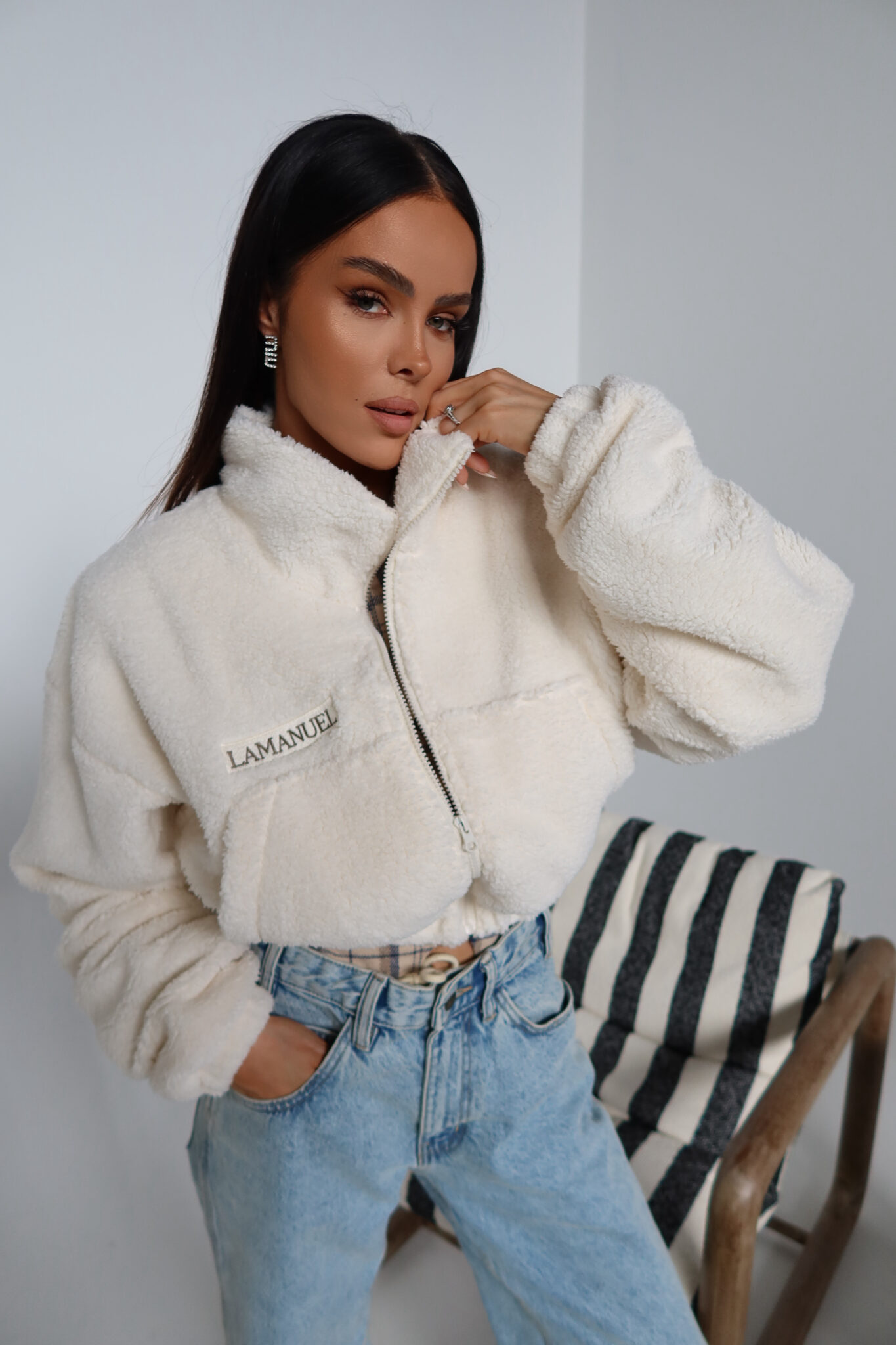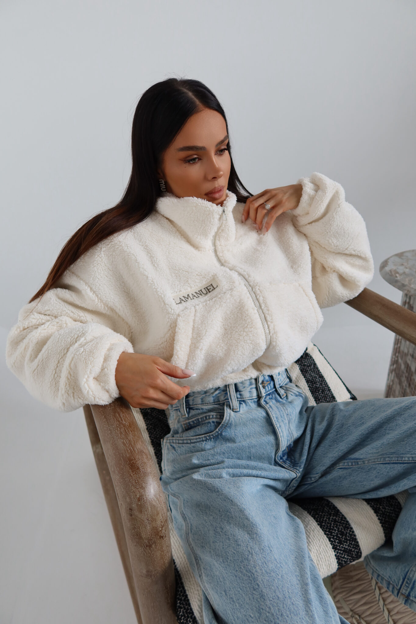 Kurtka z miękkiego, przytulnego futerka z podszewką od wewnątrz. Krótki, lekko oversize’owy fason z wysoką stójką, kieszeniami z klapką i zamkiem na całej długości. Na piersi naszywka z logo. Ciepła i stylowa propozycja na chłodniejsze dni.Skład: 100% poliester