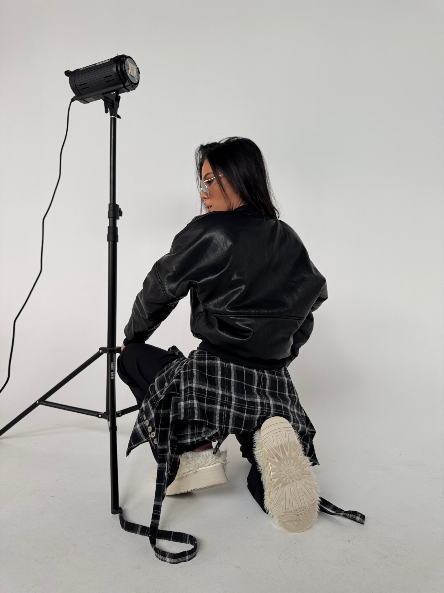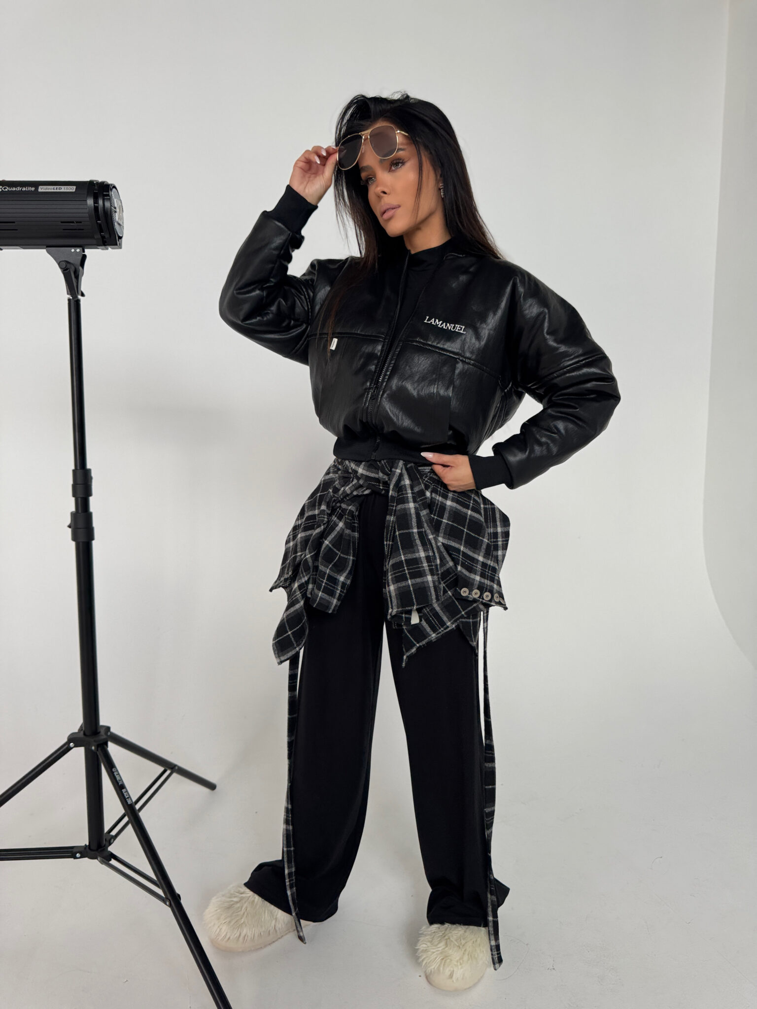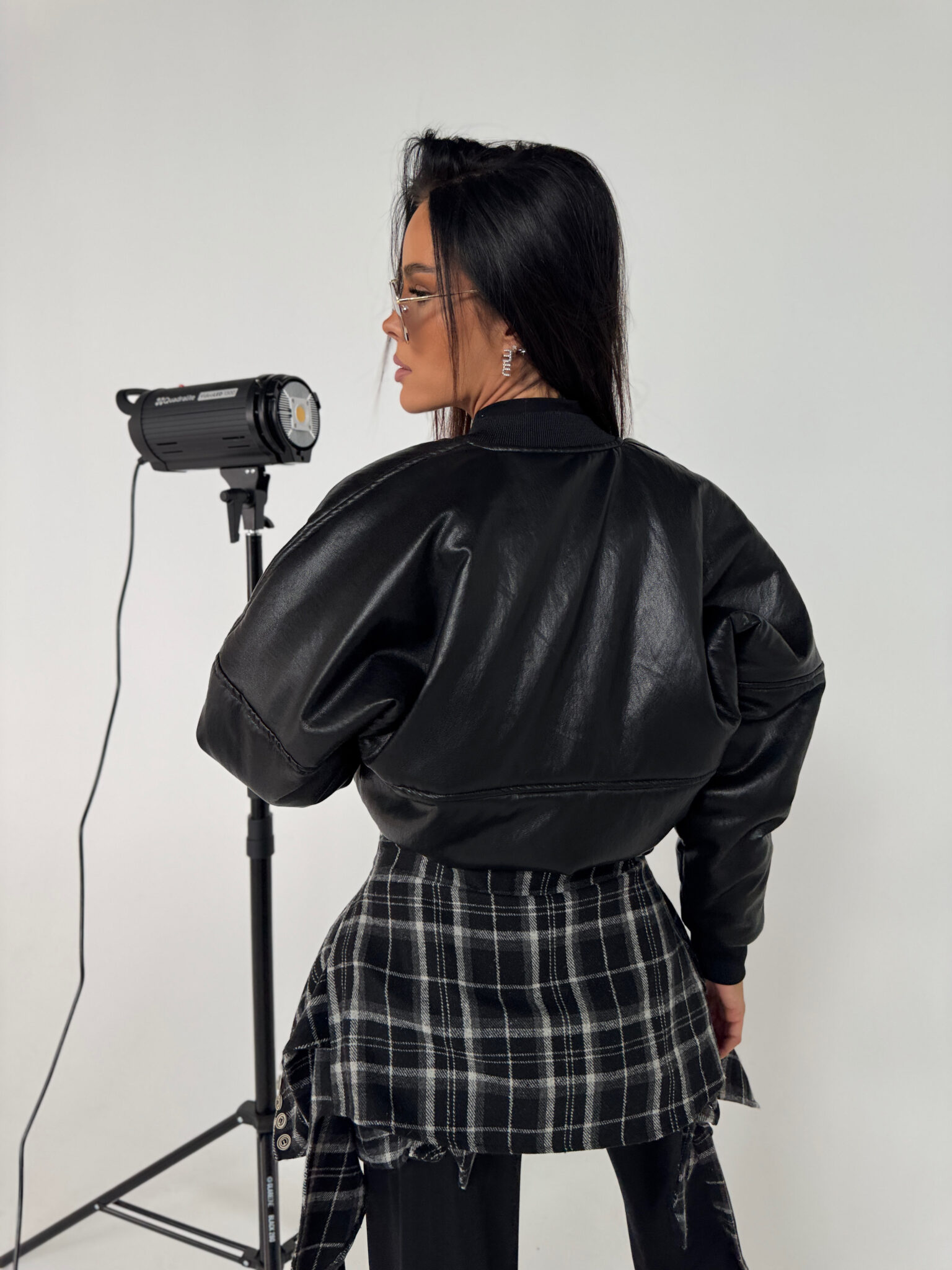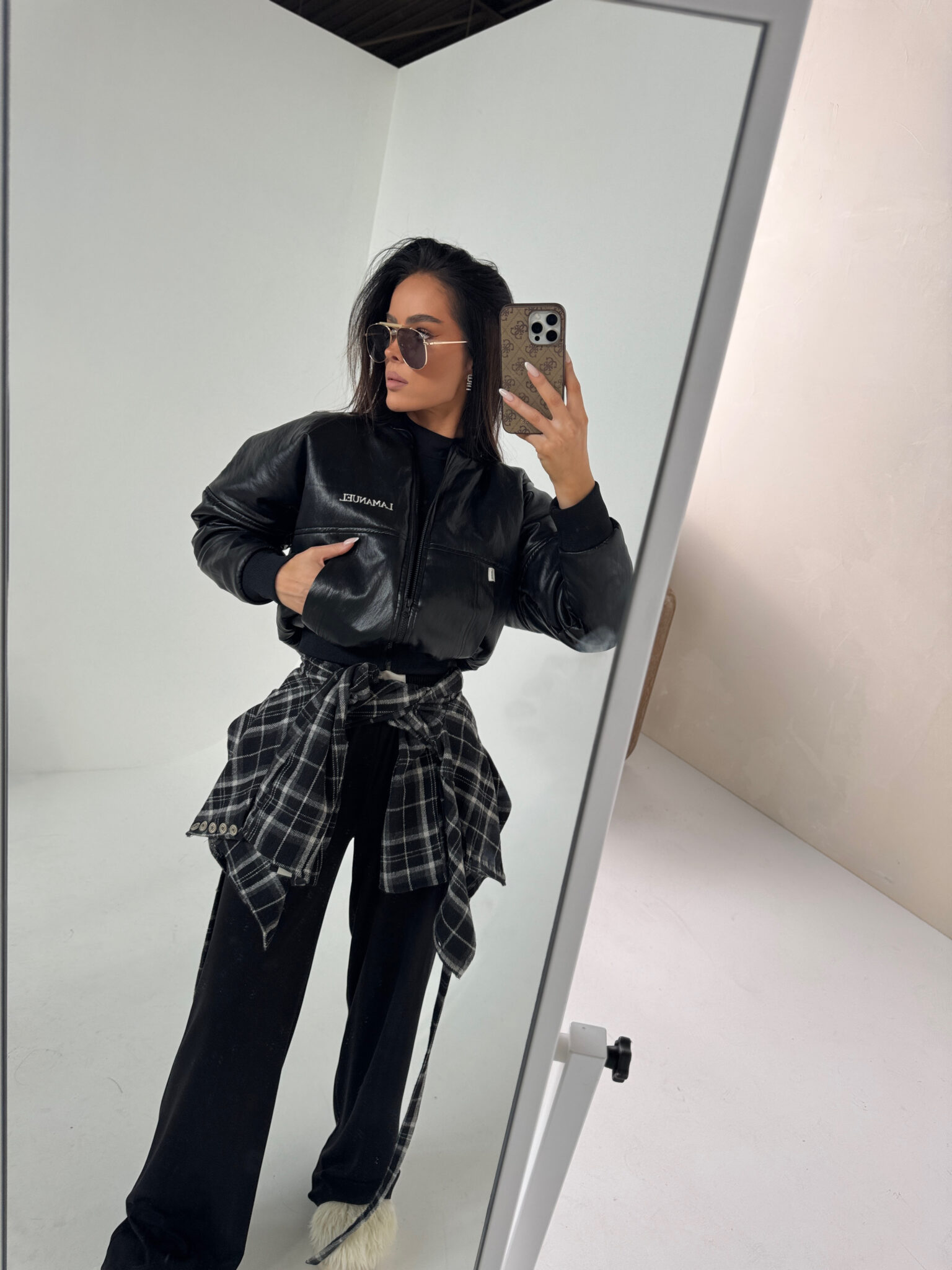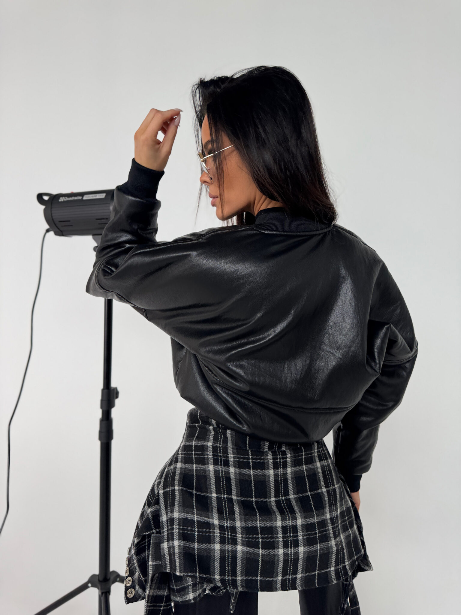 Krótka kurtka wykonana z miękkiej skóry ekologicznej o matowym wykończeniu. Zapinana na suwak, z kieszeniami i delikatnym haftem z logo na piersi. Dół i mankiety wykończone elastycznym ściągaczem, który podkreśla sylwetkę i nadaje sportowy charakter. Idealna jako uzupełnienie codziennych i miejskich stylizacji.Skład: 50% poliuretan 45% rayon 5% nylon