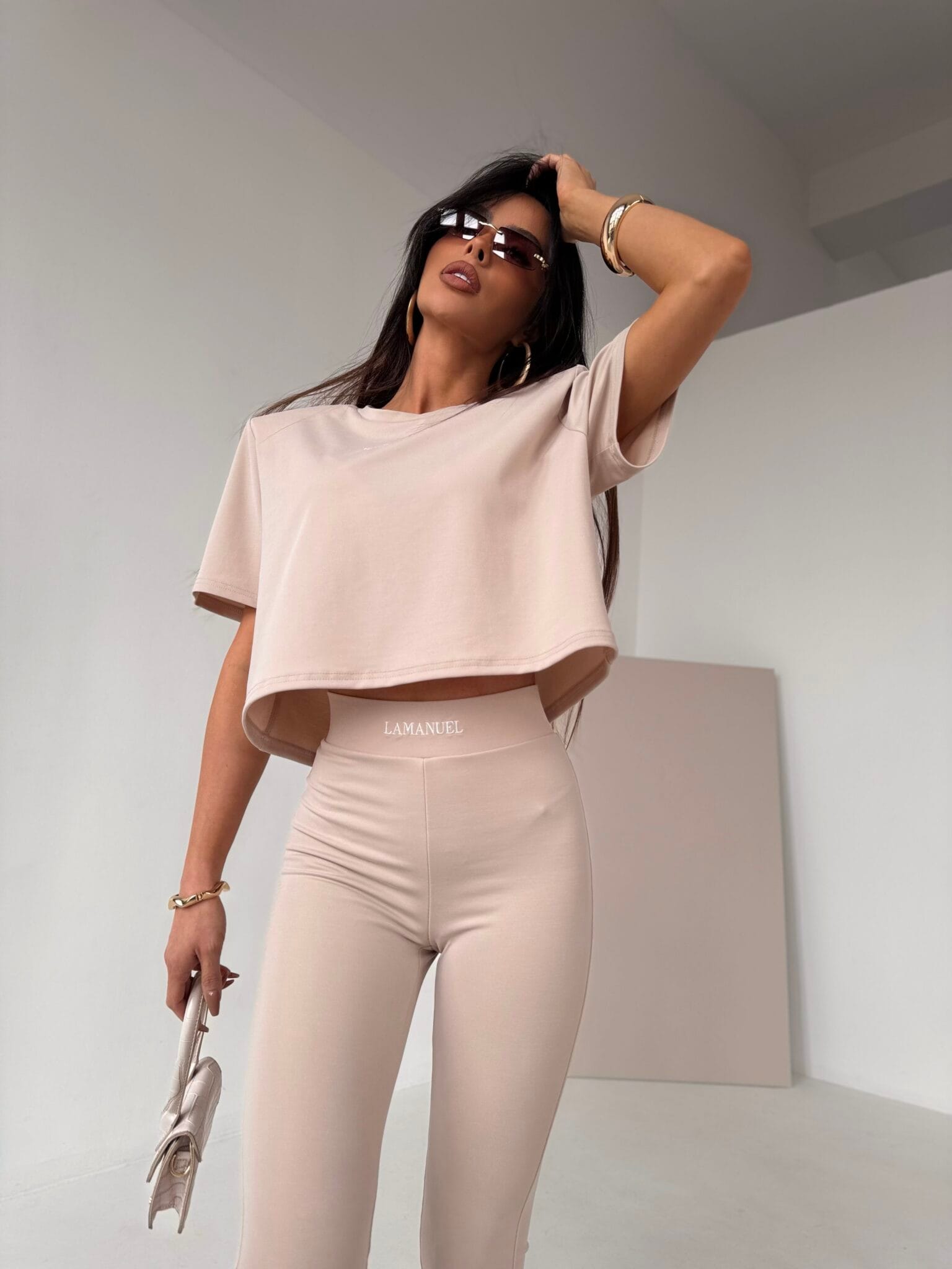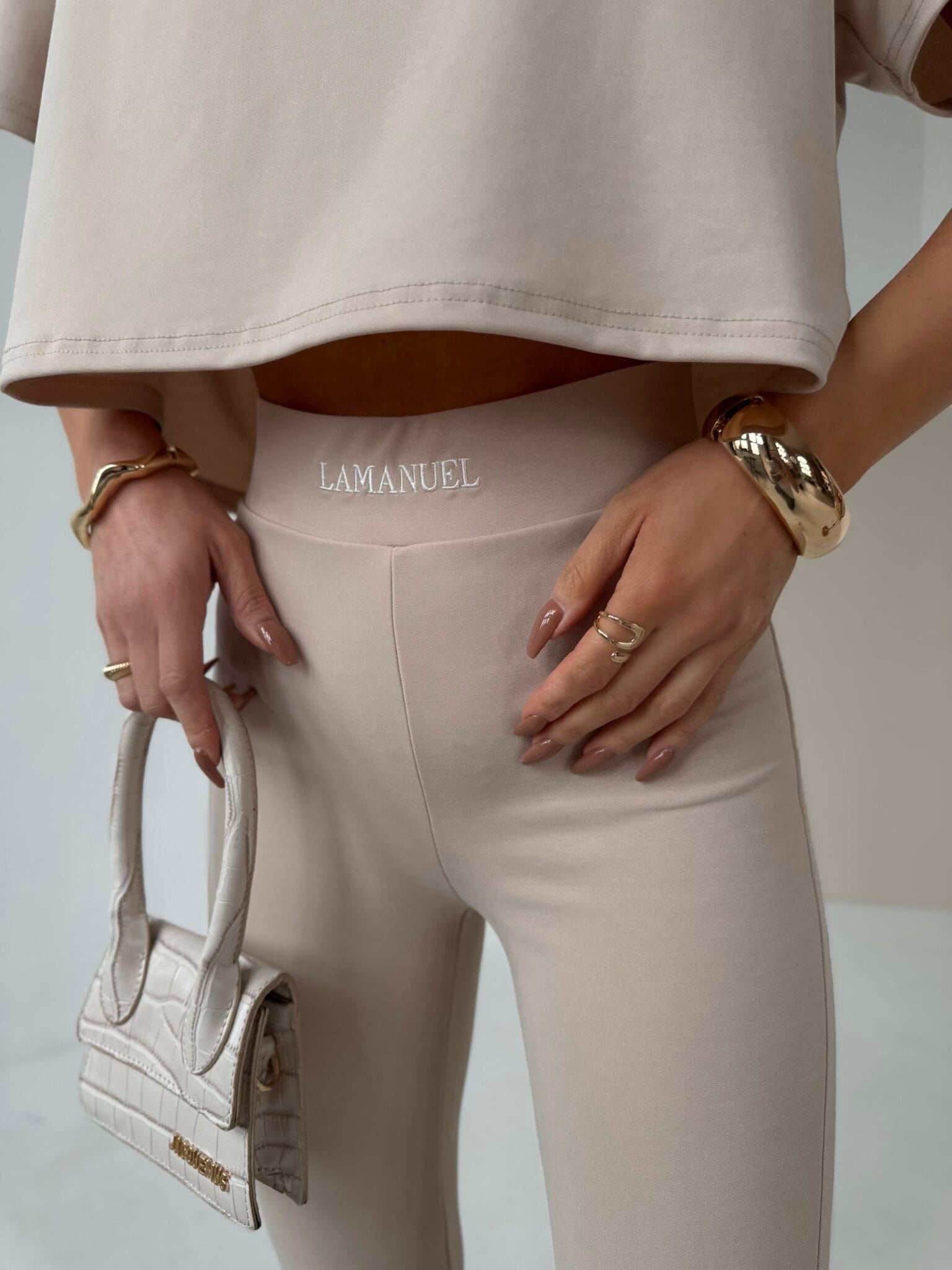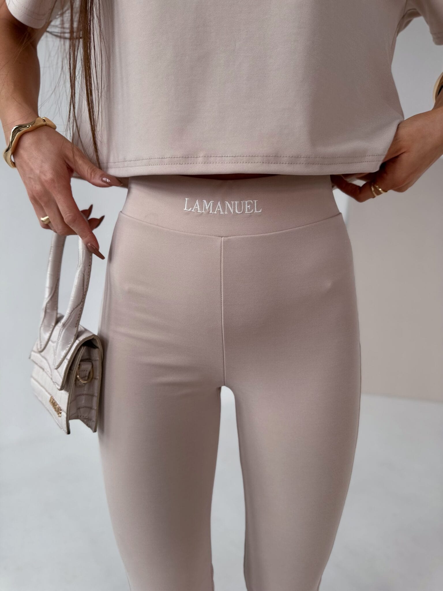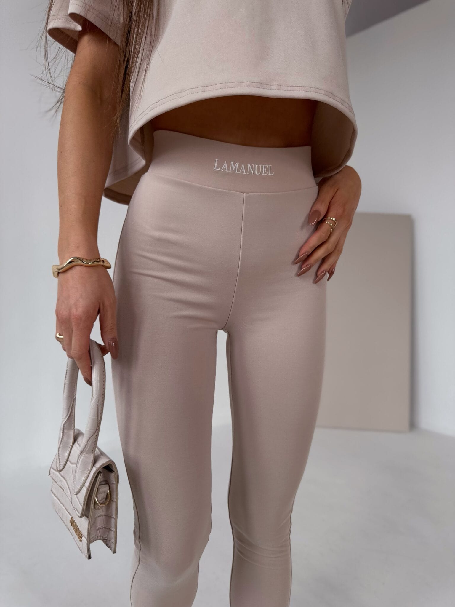 Idealne połączenie komfortu i stylu. Te legginsy to must-have w Twojej garderobie – dopasowane, elastyczne i idealnie podkreślające sylwetkę. Szeroka guma z logo z przodu nadaje im sportowego, ale zarazem modowego charakteru. Sprawdzą się na co dzień, do oversize’owej bluzy, krótkiego topu lub klasycznej koszuli dla przełamania stylu. Bez względu na to, jak je zestawisz, zawsze będziesz czuć się swobodnie i pewnie.Skład: 53% lyocell 38% poliester 9% spandex