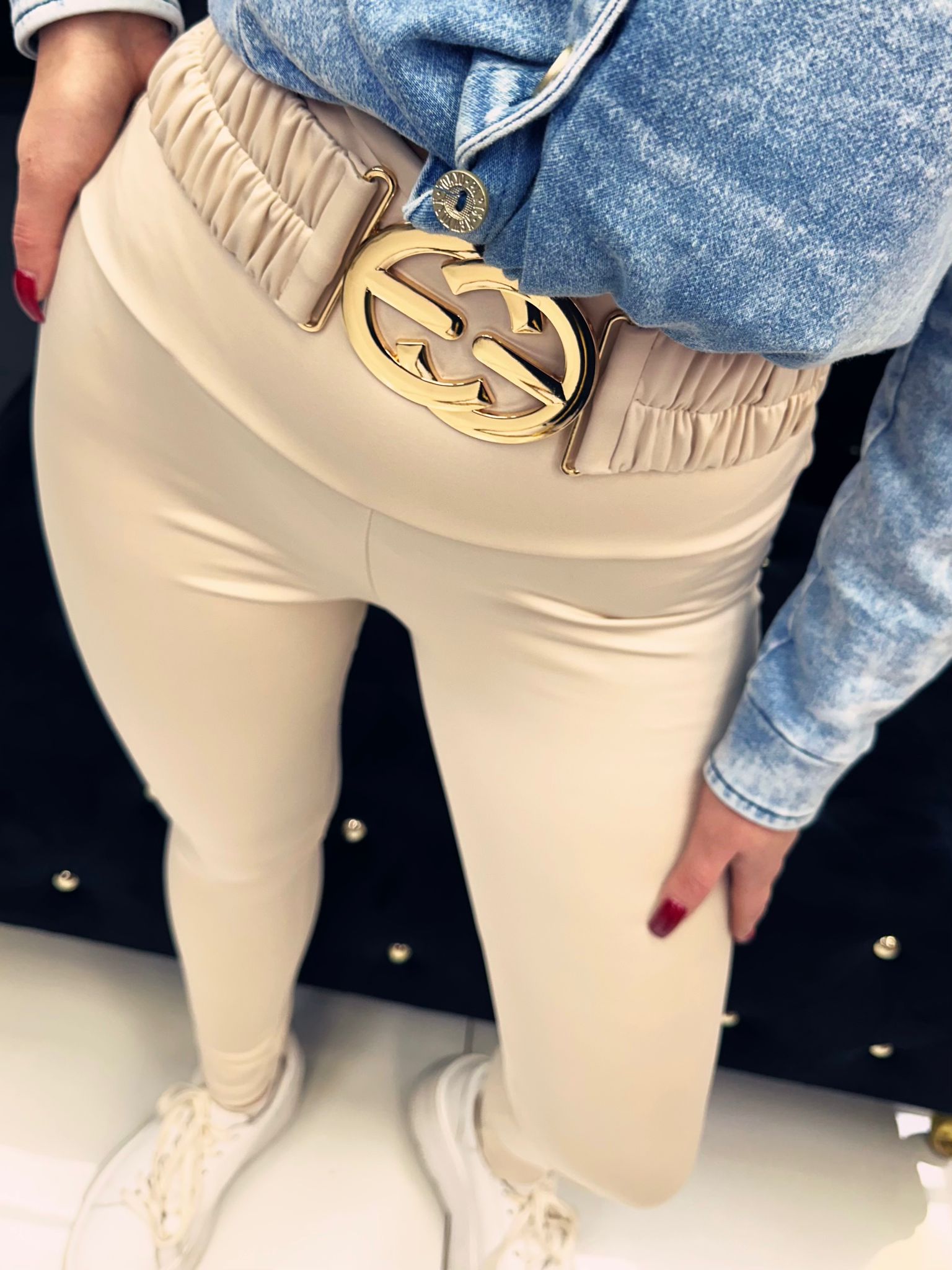 Odkryj komfort i styl dzięki leginsom Klamra GG w eleganckim odcieniu beżu. Ich dopasowany krój podkreśla sylwetkę, zapewniając jednocześnie wygodę na co dzień. Wytrzymały, elastyczny materiał gwarantuje swobodę ruchów i długotrwałe użytkowanie, a modny design dodaje każdej stylizacji wyjątkowego charakteru. Idealne do joggingu, jogi czy casualowych outfitów – te leginsy sprawią, że poczujesz się pewnie i komfortowo w każdej sytuacji. Postaw na jakość i styl, które podkreślają Twój indywidualny look!