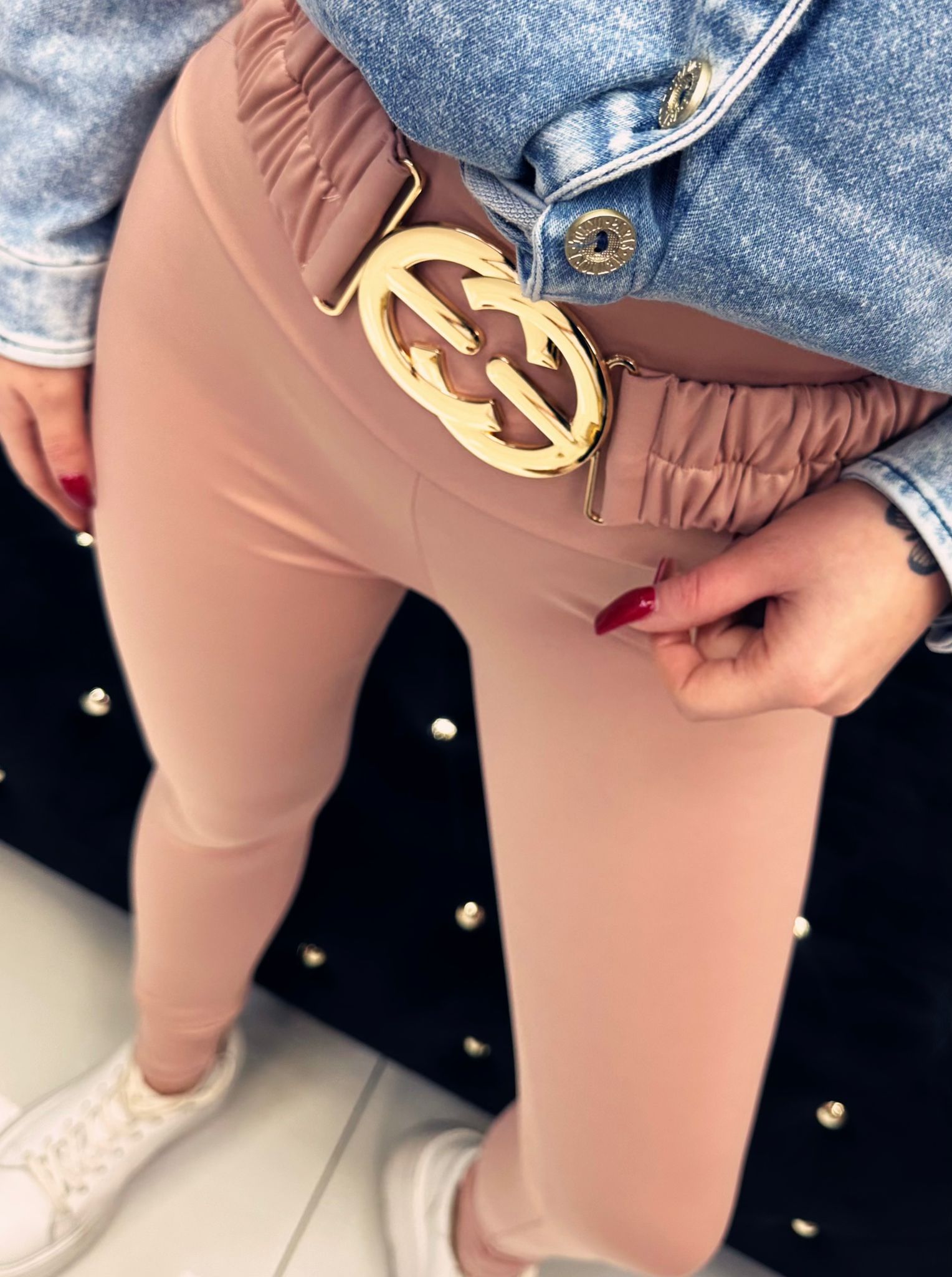 Odkryj komfort i styl z leginsami Klamra GG w pudrowym różu. Ich modny, delikatny odcień dodaje kobiecej pewności siebie, a wysokiej jakości materiał zapewnia doskonałe dopasowanie i trwałość. Elastyczny, oddychający materiał pozwala na swobodne ruchy podczas treningów, jogi czy codziennych aktywności. Subtelny design z eleganckim akcentem klamry podkreśla unikalny styl, czyniąc je idealnym wyborem na każdą okazję. Postaw na wygodę i modny look – te leginsy będą Twoim niezawodnym elementem garderoby, który podkreśli Twój charakter.