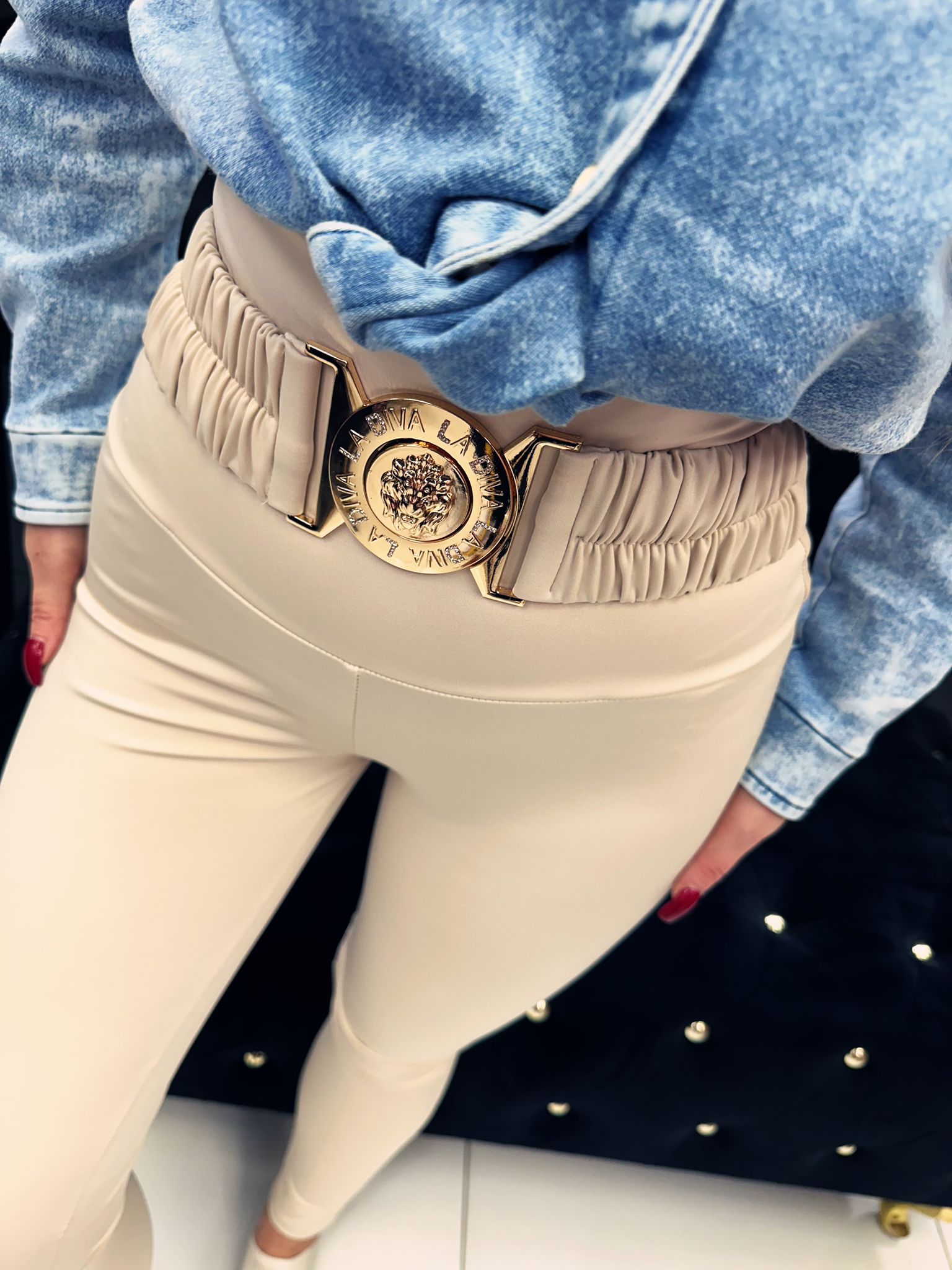 Odkryj komfort i styl w jednym – legginsy Klamra Lew Beż. Wykonane z wysokiej jakości elastycznego materiału, zapewniają doskonałe dopasowanie i pełną swobodę ruchu na co dzień i podczas treningów. Beżowy kolor dodaje elegancji i uniwersalności, dzięki czemu łatwo zestawisz je z różnorodnymi stylizacjami. Klasyczny krój i subtelne detale sprawiają, że legginsy podkreślają sylwetkę, podnosząc pewność siebie. To niezastąpiona propozycja dla aktywnych kobiet ceniących komfort i modny wygląd. Postaw na wygodę i styl z legginsami Klamra Lew Beż!