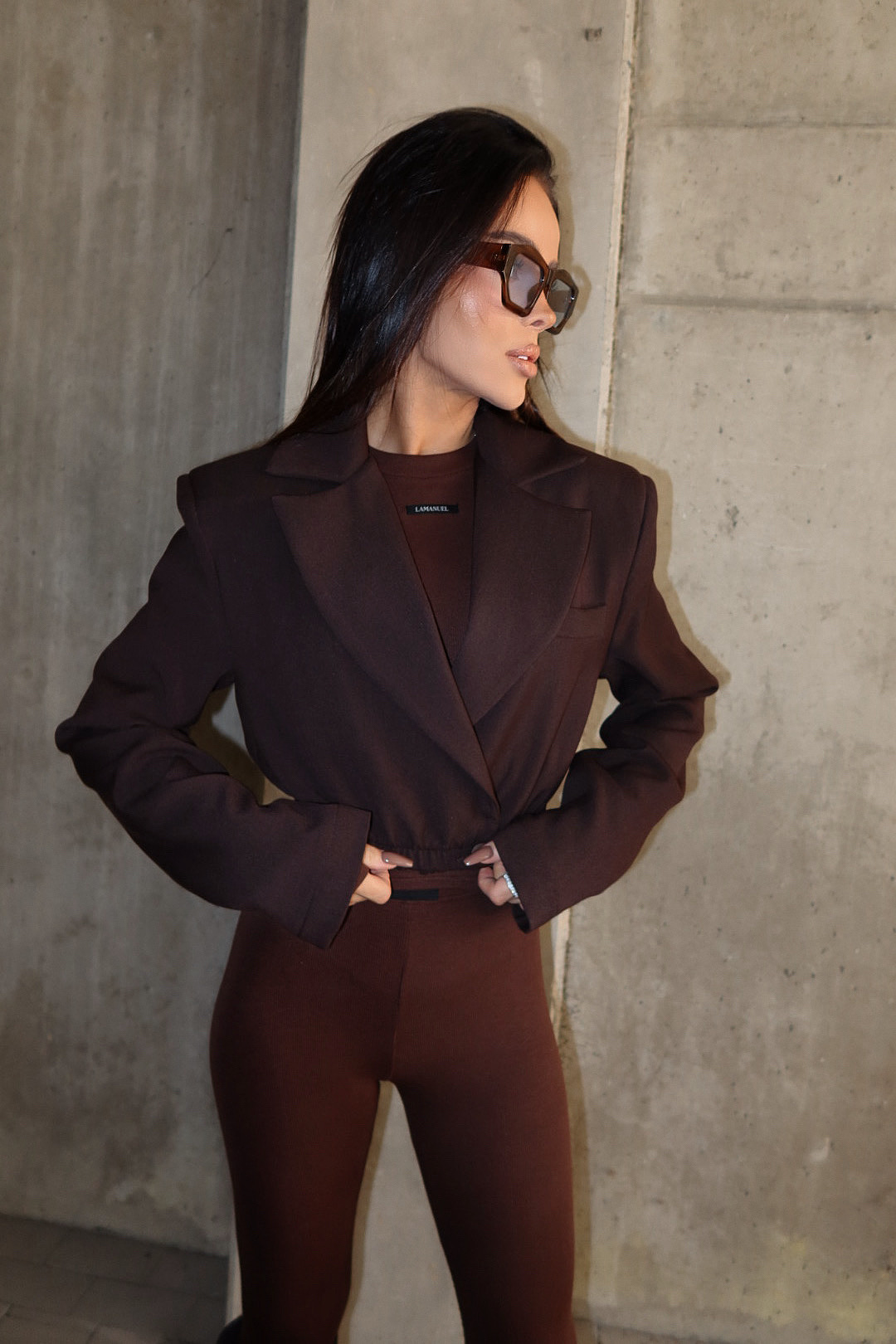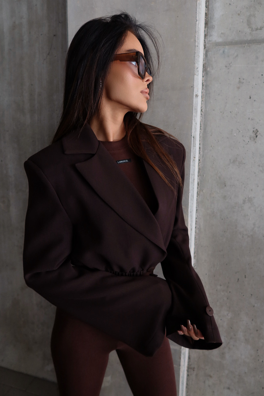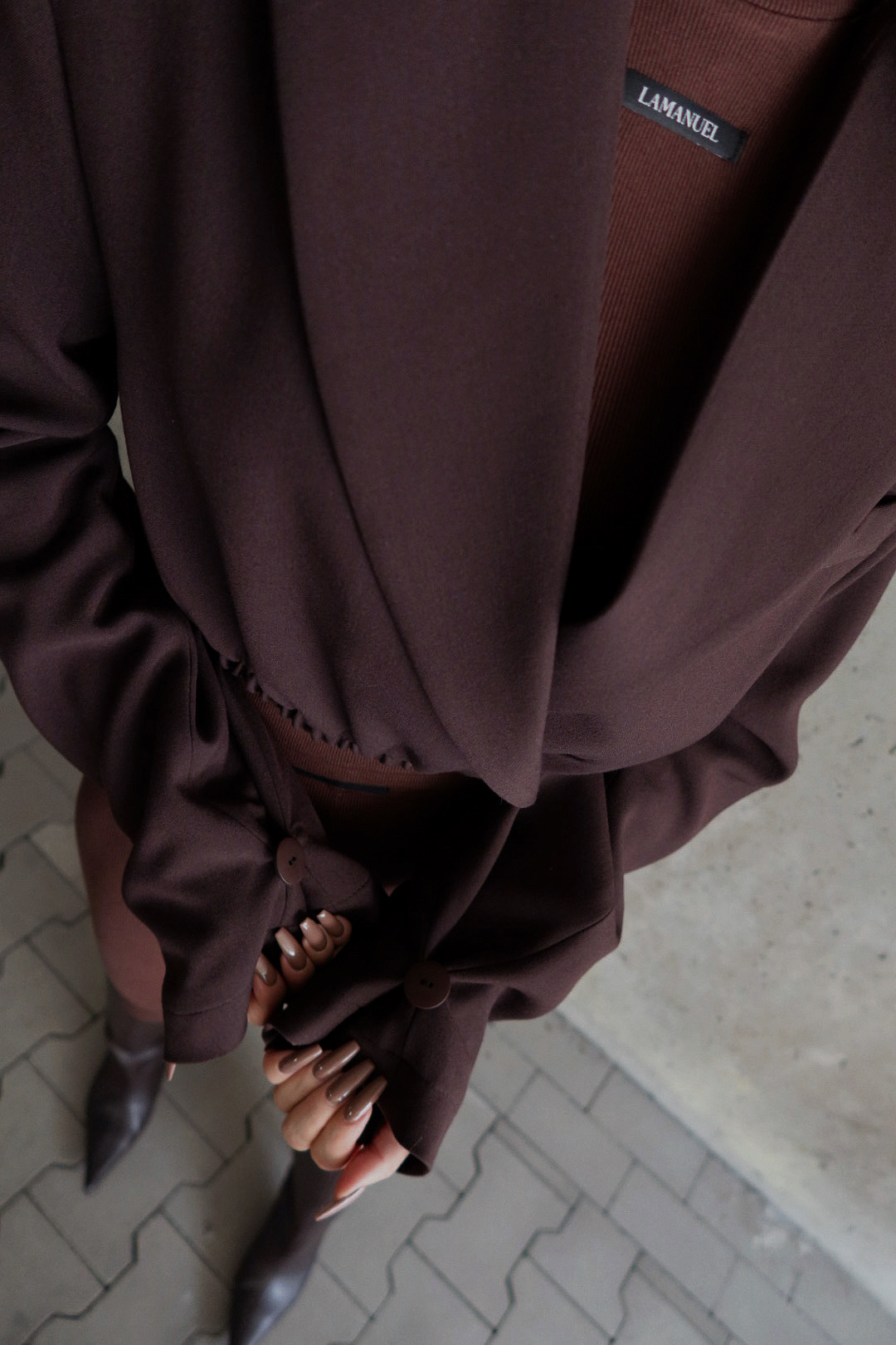 Ta marynarka robi całą stylówkę. Oversize’owy krój w wersji cropped i taliowanie gumką dają idealny balans między elegancją a streetem. Ale to rękawy są tu gwiazdą – szerokie, zapięciem na guziki. Możesz spiąć je od góry, od dołu albo zostawić luźno – za każdym razem dają zupełnie inny efekt.Skład: 73% poliester 21% wiskoza 6% spandex