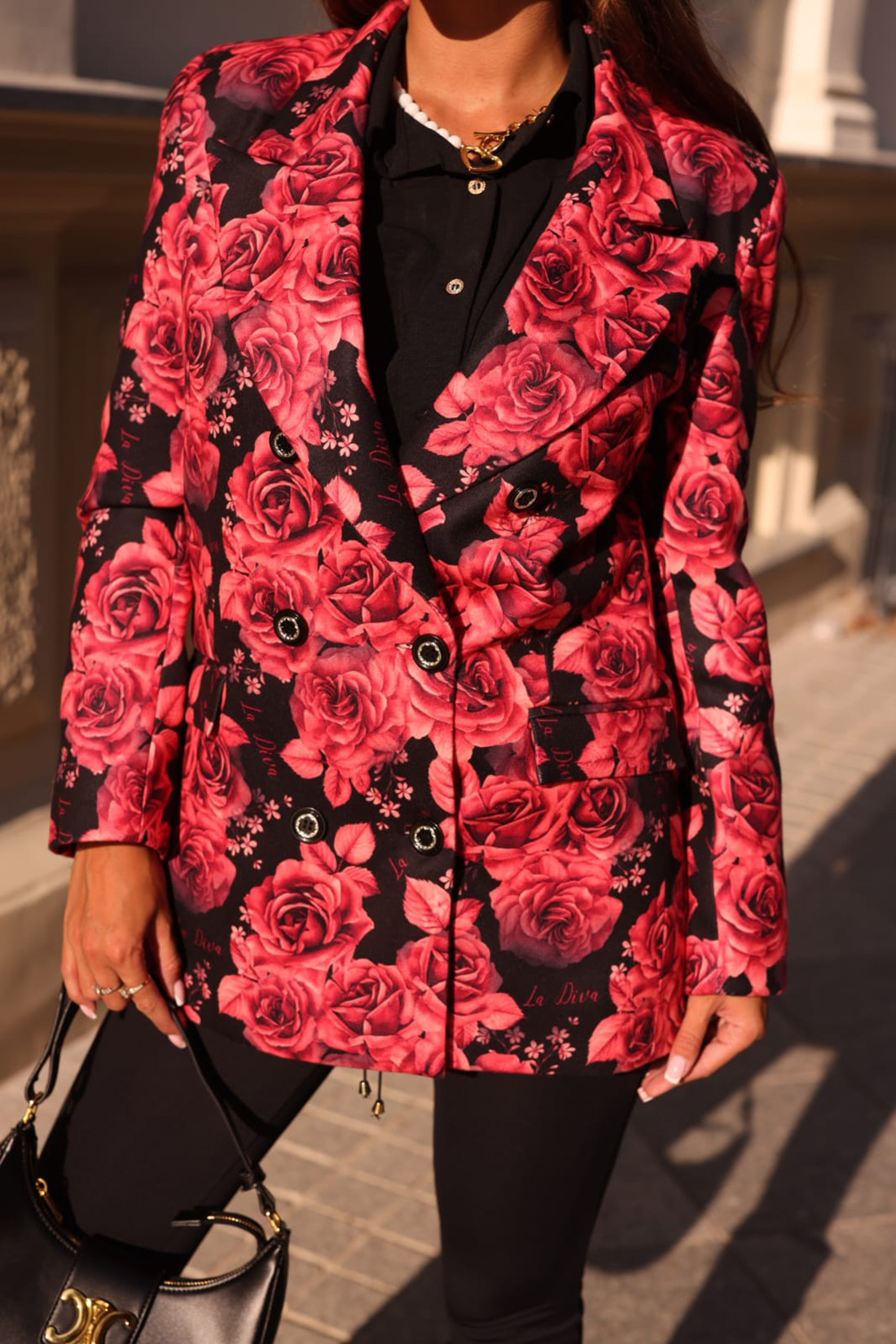 Odkryj luksus i elegancję z marynarką-płaszczykiem La Diva Premium Print Rose. Ta wyjątkowa propozycja łączy stylowe wzornictwo z wysokiej jakości materiałami, zapewniając komfort i wyjątkowy wygląd na co dzień i na specjalne okazje. Subtelny, kwiatowy print dodaje kobiecości i świeżości, podkreślając indywidualny charakter stroju. La Diva Premium to gwarancja trwałości i perfekcyjnego wykończenia, które podkreśli Twoją pewność siebie. Zainwestuj w ponadczasowy design i poczuj się wyjątkowo każdego dnia!