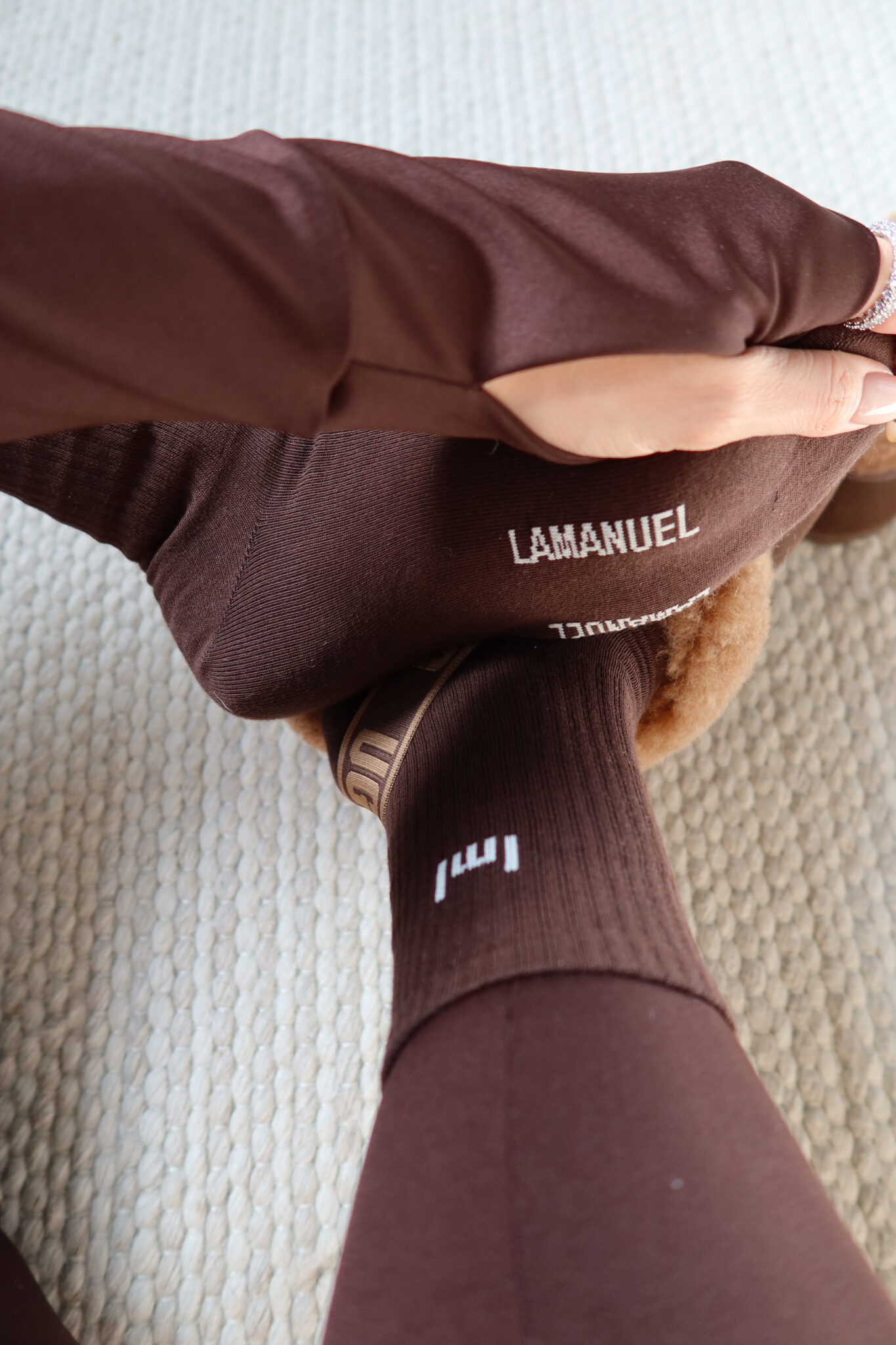 Ribbed skarpety wykonane z miękkiej, elastycznej bawełny z dodatkiem przędzy elastycznej, która zapewnia idealne dopasowanie do stopy. Ściągacz o średniej wysokości dobrze trzyma się łydki, nie uciskając. Minimalistyczne logo “lml” przy kostce i “LAMANUEL” na spodzie dodają charakteru w stylu sport-luxe. Idealne do sneakersów, workerów i botków – stylowy detal, który podkręca każdą stylizację.Pasują od rozmiaru 36-42