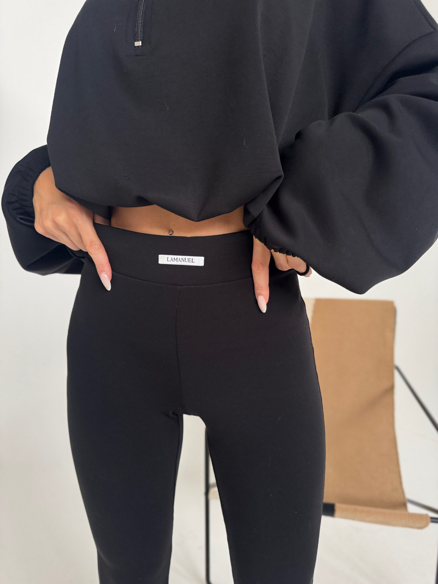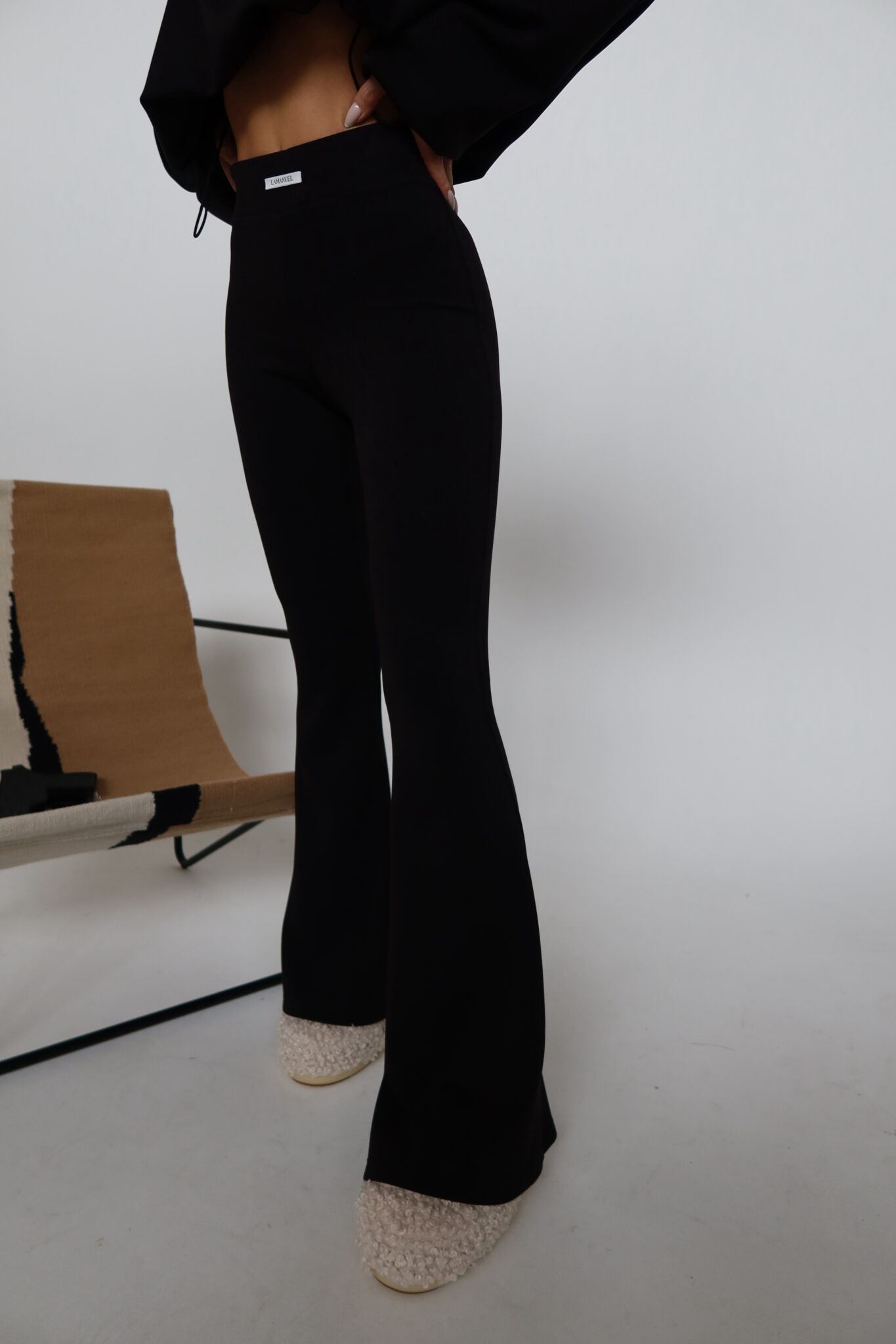 Legginsy z rozszerzaną nogawką, uszyte z mięsistego i elastycznego materiału z „misiem” od wewnątrz – miękkie, ciepłe i bardzo komfortowe. Wysoki stan pięknie podkreśla talię, a naszyta z przodu metka z logo dodaje im charakteru. Połączenie stylu, wygody i jakości premium.Skład: 55% poliester 37% modal 8% spandex