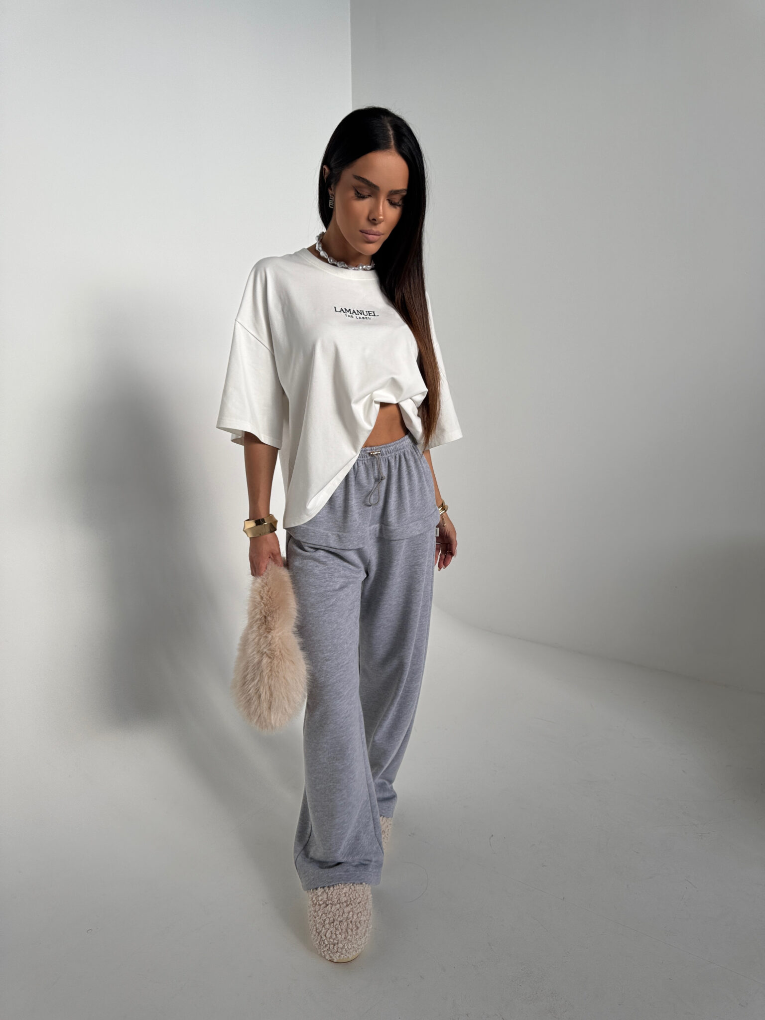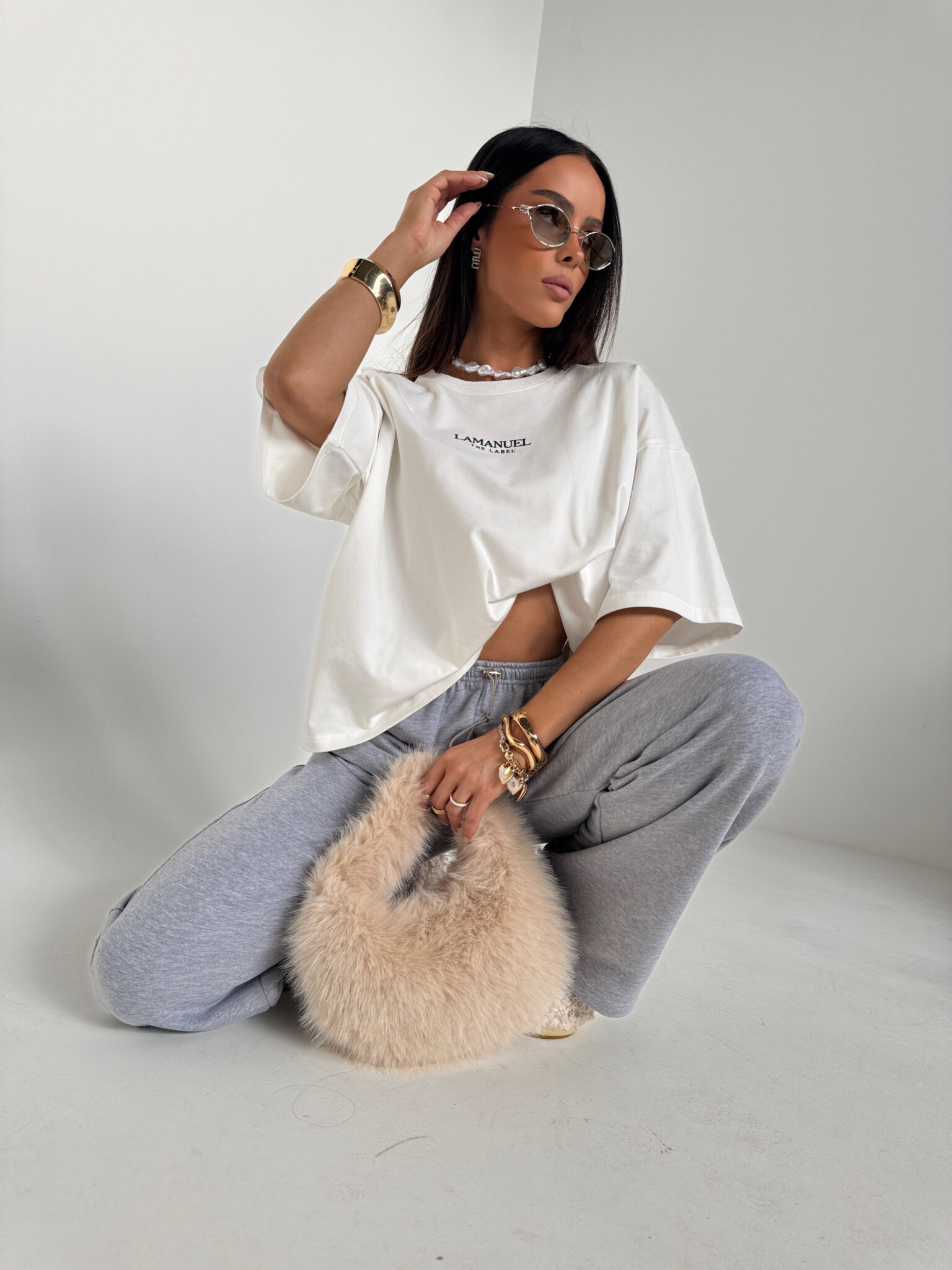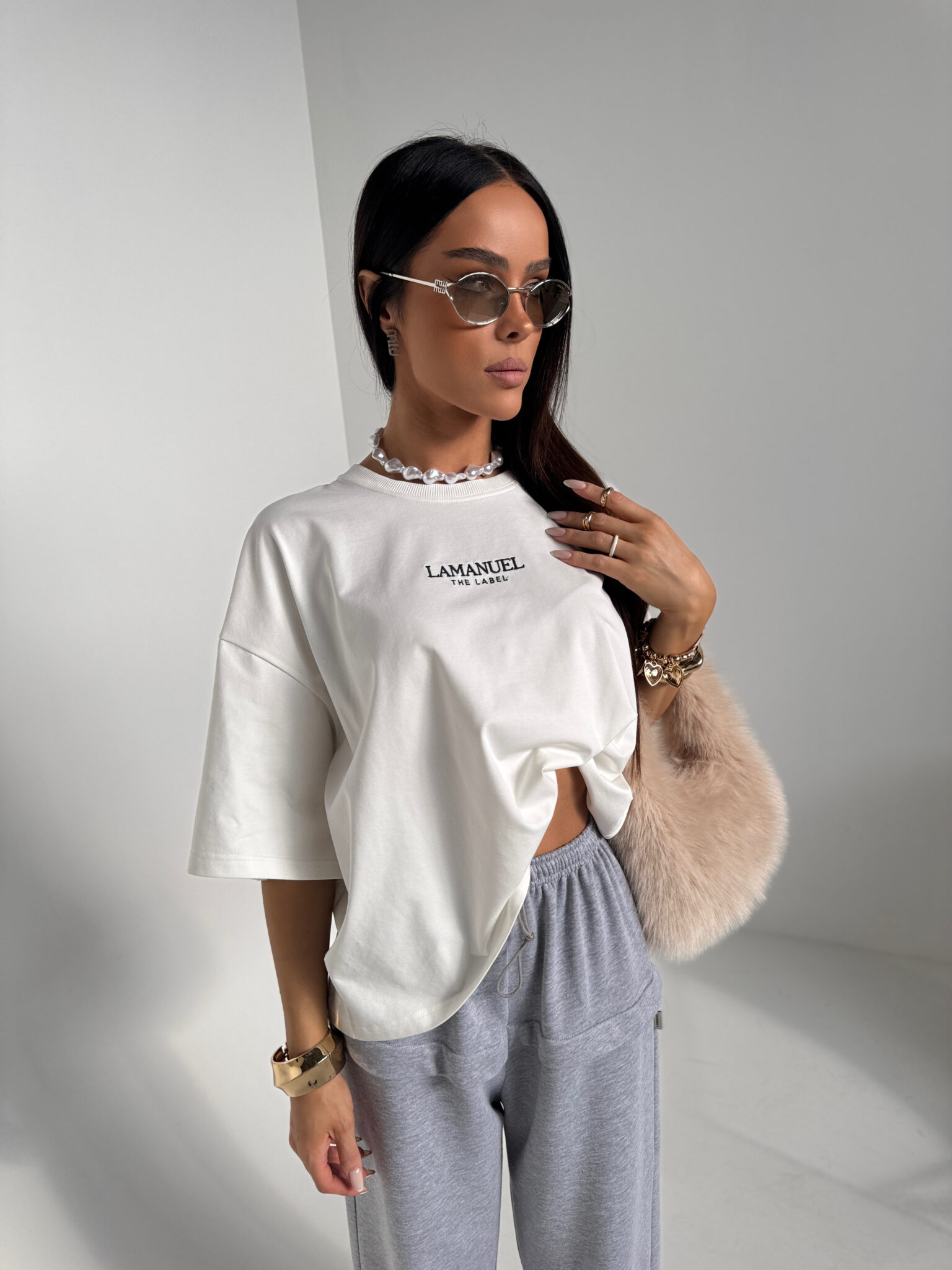Luźny t-shirt o kroju oversize z delikatnie obniżoną linią ramion. Minimalistyczny haft z logo LAMANUEL z przodu. Wygodny, miękki materiał, który dobrze układa się na sylwetce. Świetny do codziennych stylówek, zarówno solo, jak i w zestawie matchy.Skład: 100% bawełna