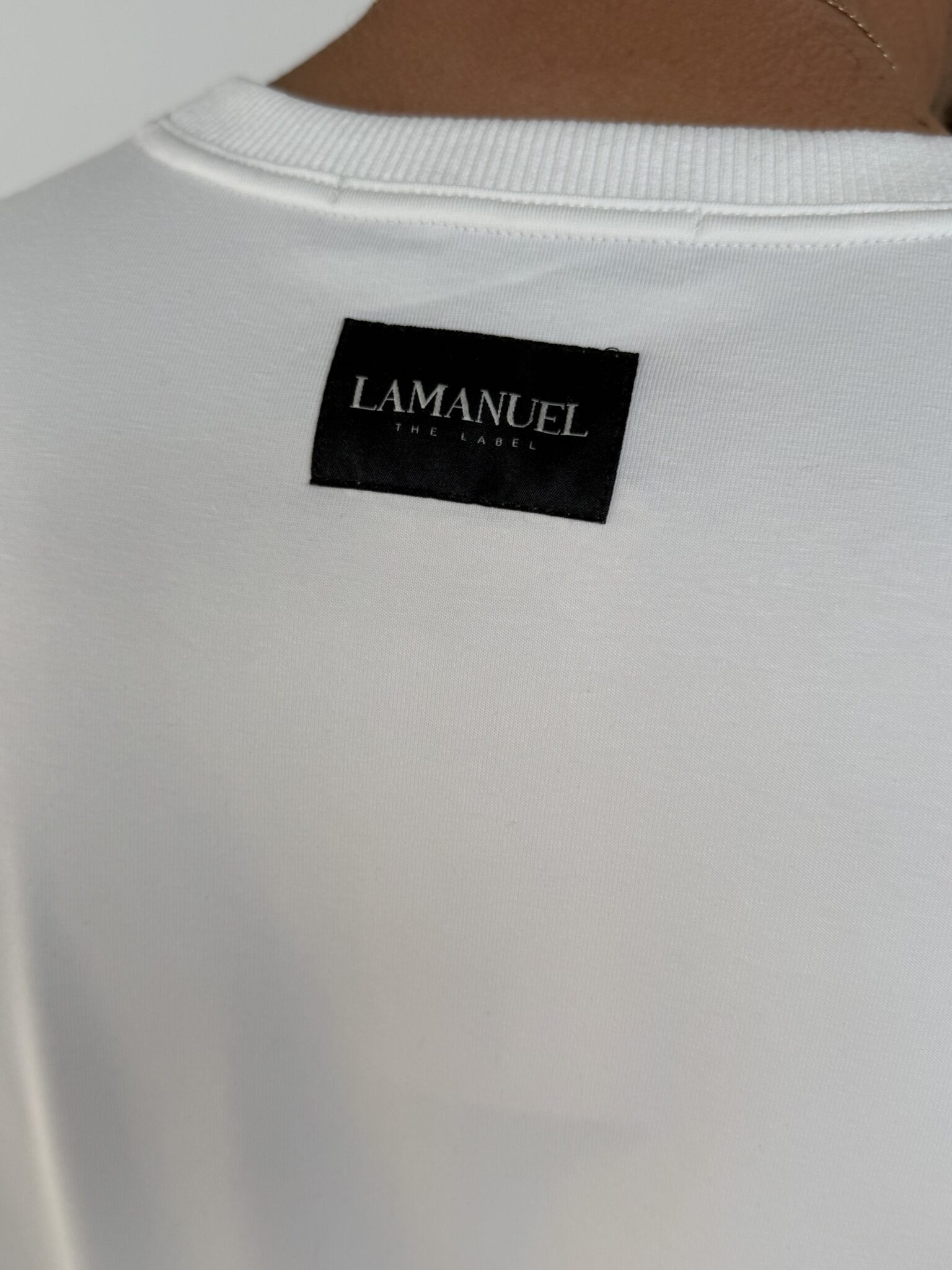 Klasyczny, męski t-shirt o szerokim, swobodnym kroju. Logo LAMANUEL w formie haftu z przodu dodaje charakteru. Idealny basic na co dzień – sprawdza się zarówno w streetwearze, jak i w casualowych stylizacjach.Skład: 100% bawełna