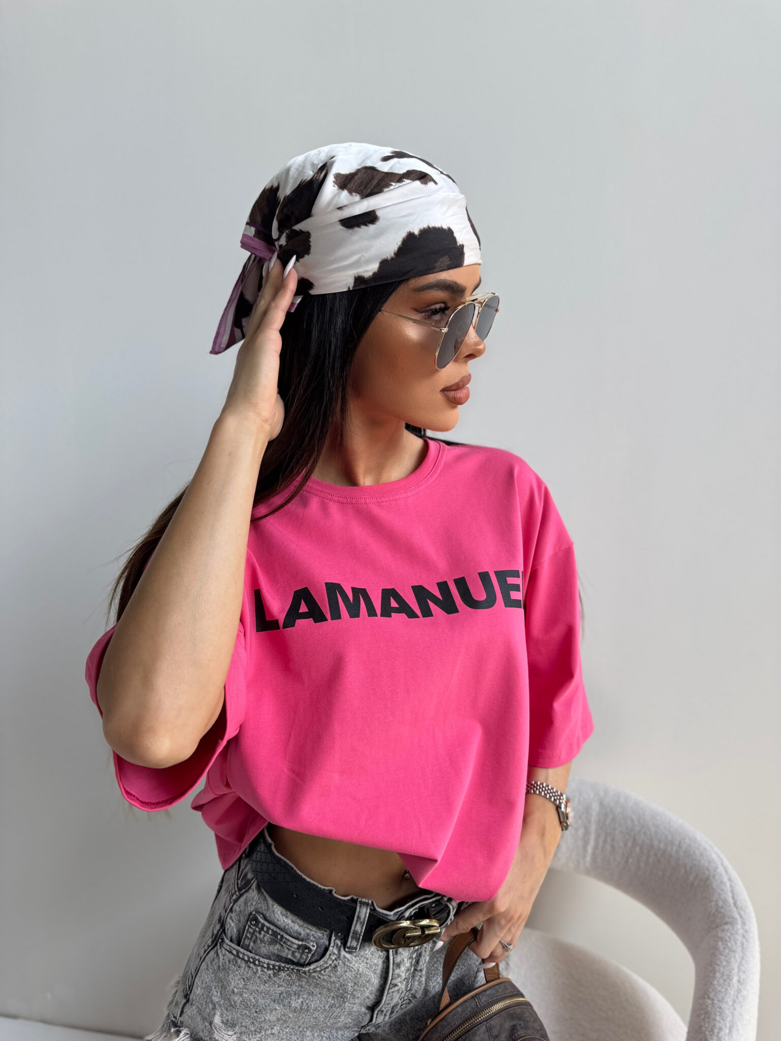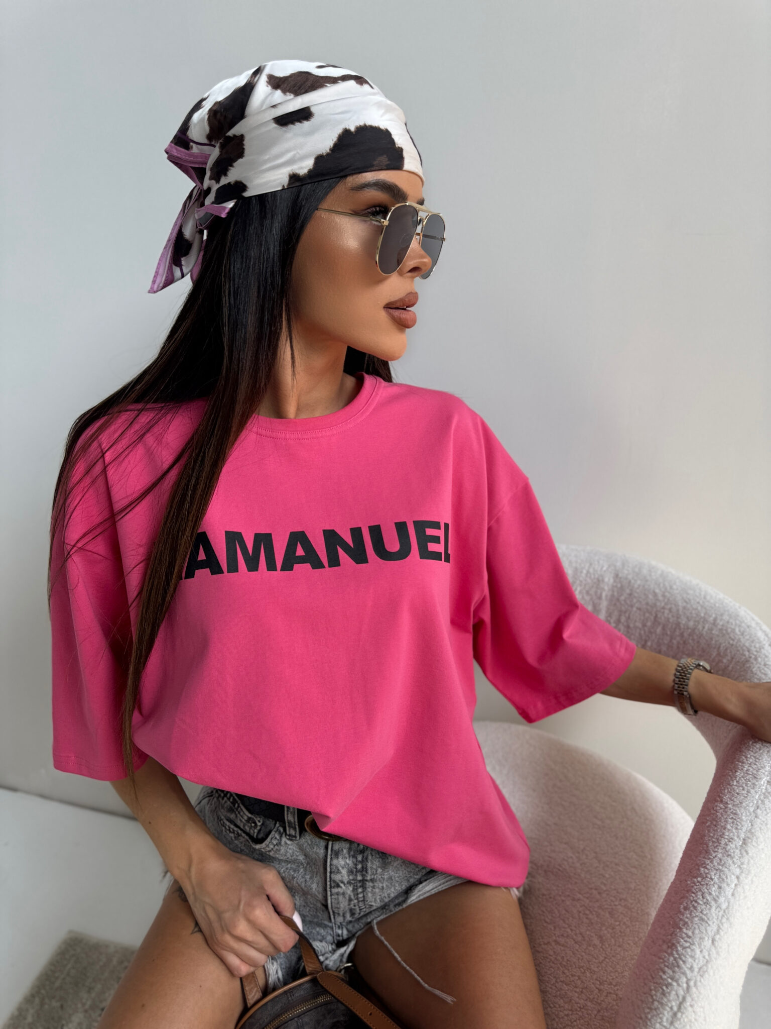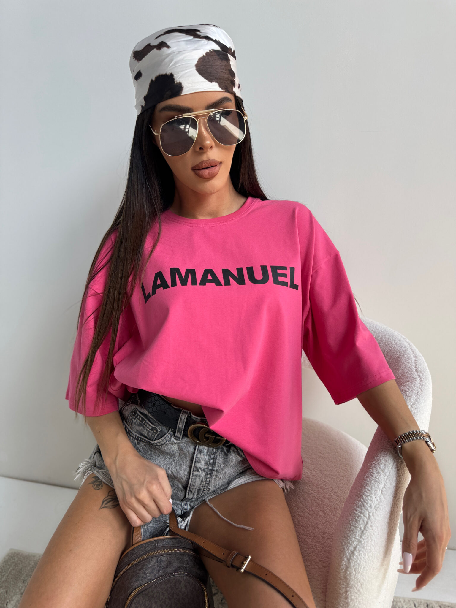 Oversize’owy T-shirt o luźnym kroju wykonany z wysokiej jakości bawełny, zapewniającej wygodę noszenia i swobodę ruchów. Prosty fason z lekko obniżoną linią ramion, który świetnie układa się na sylwetce i pasuje do różnych stylizacji – zarówno sportowych, jak i bardziej casualowych. Na przodzie nadrukowane logo LAMANUEL w kontrastowym wykończeniu, które przyciąga wzrok i nadaje charakteru. T-shirt sprawdzi się zarówno w zestawieniu z dresami, legginsami, jak i z jeansami czy szortami.Skład: 100% bawełna